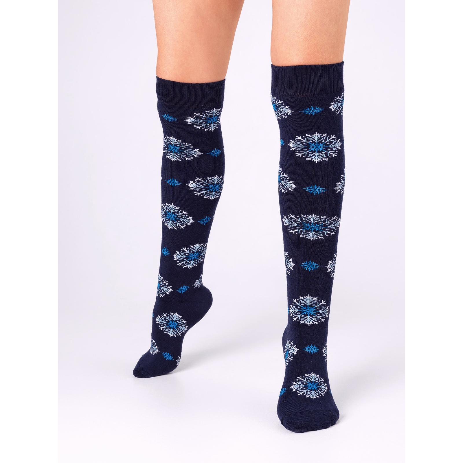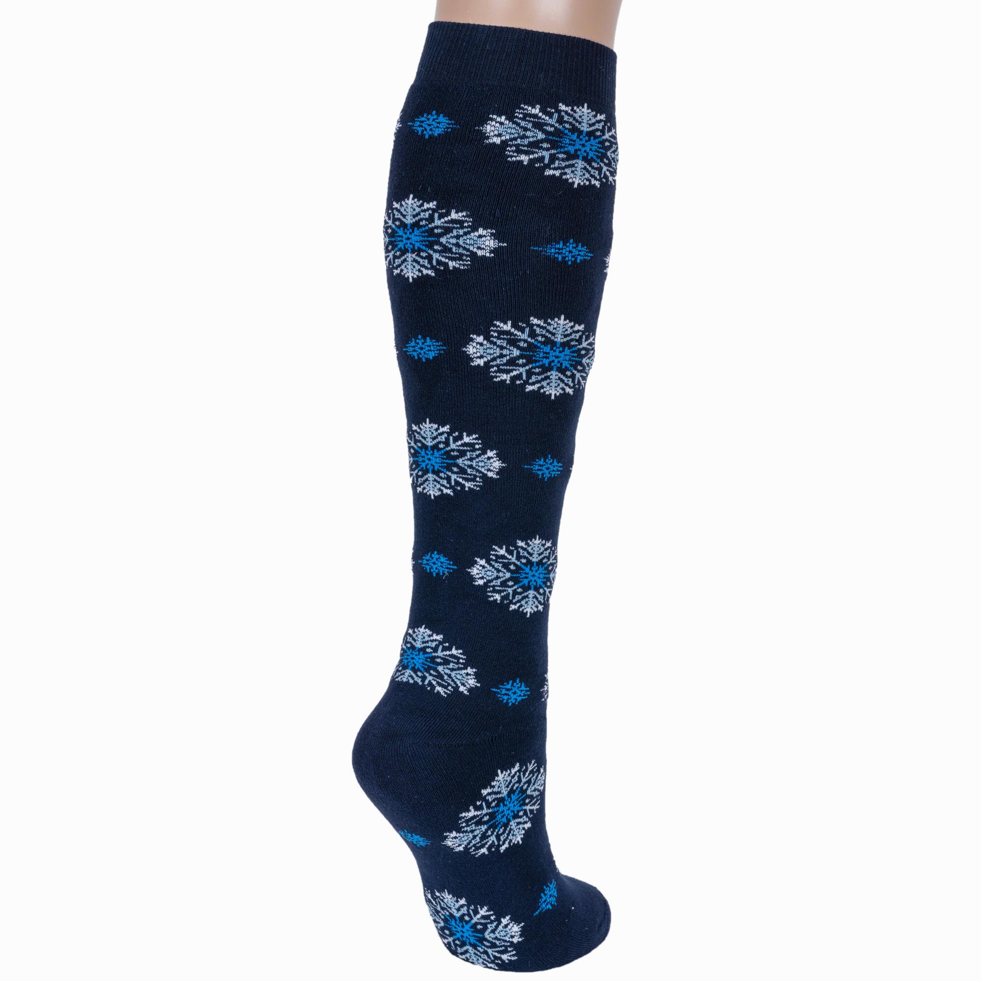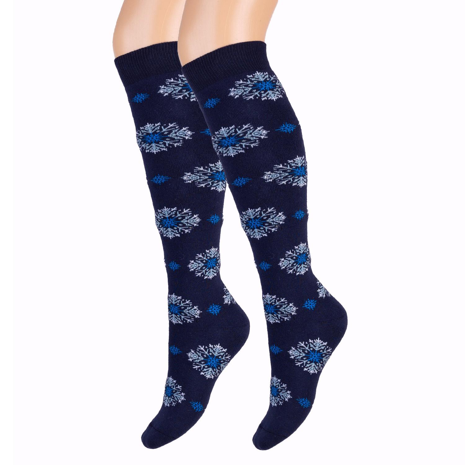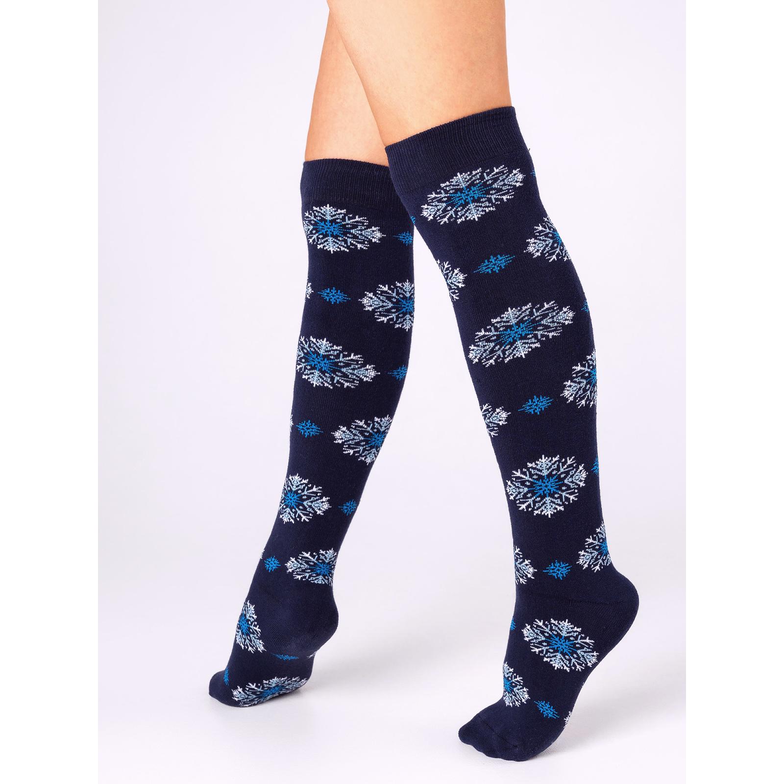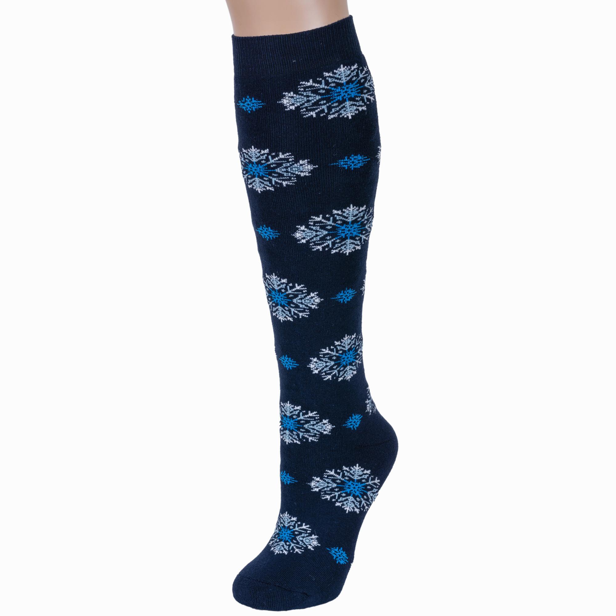 Зимние женские гольфы, цвет темно-синий, махровые, возможно бесшовные, принт (рисунок): новый год, с узором, состав: 73% хлопок, 15% полипропилен, 9% полиамид, 3% эластан, арт. С-942. Производитель «КРАСНАЯ ВЕТКА» Россия под брендом «Красная ветка».