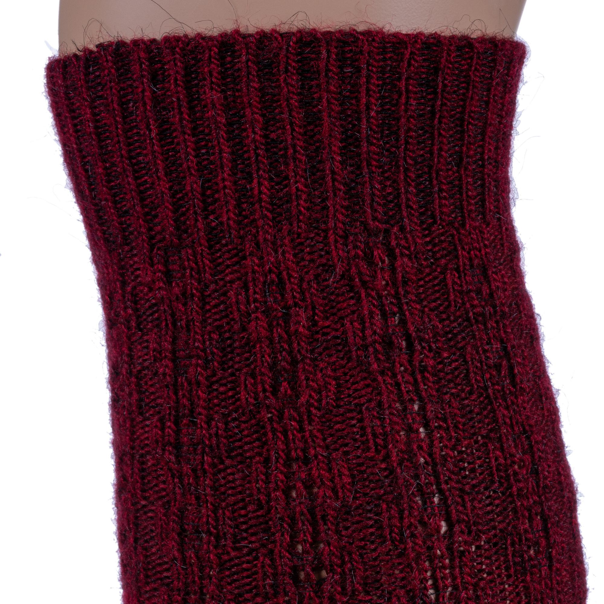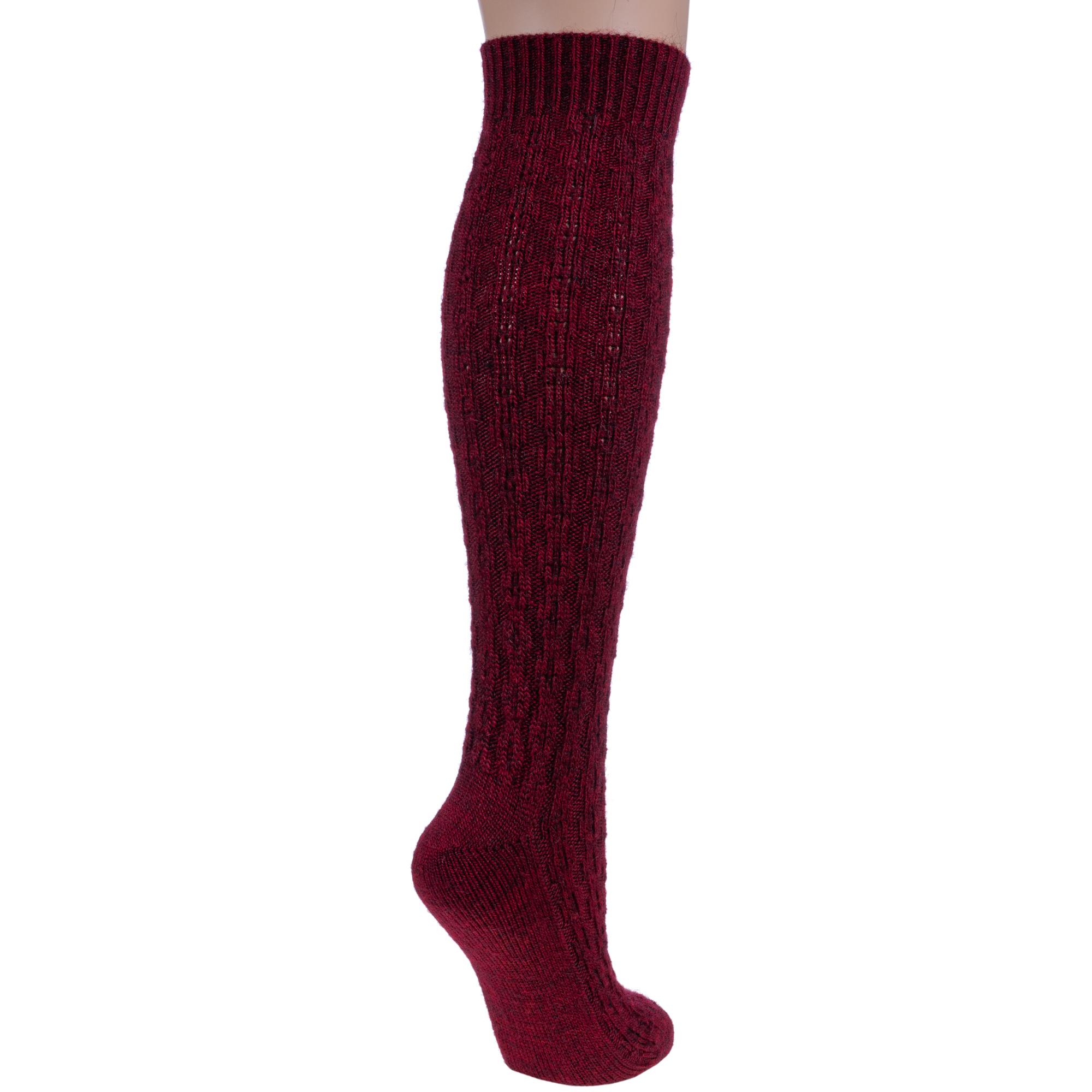 Женские теплые гольфы бренда "RuSocks" крупной вязки, имитирующей ручную, украшены фактурным геометрическим орнаментом.