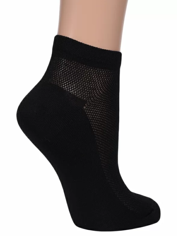 Женские носки ХОХ белого цвета. Укороченнная модель с вязкой "в сеточку". На 80% состоят из хлопка, а благодаря входящим в состав полиамида и эластана они хорошо тянутся и плотно прилегают к ноге. Сочетаются с любыми повседневными образами, а так же спортивной одеждой и обувью.