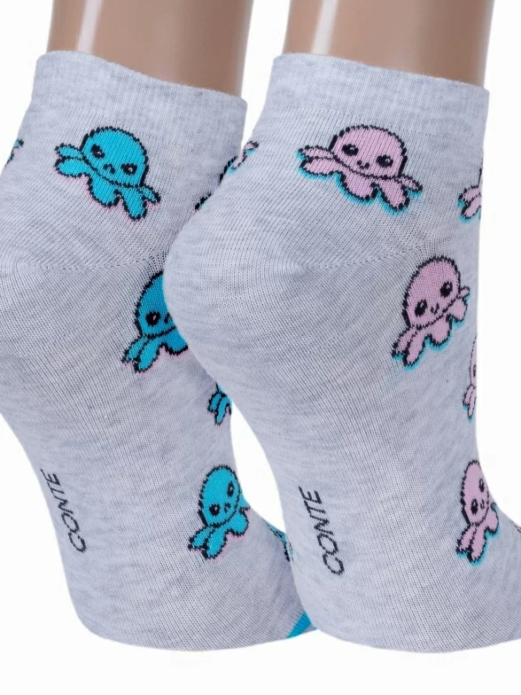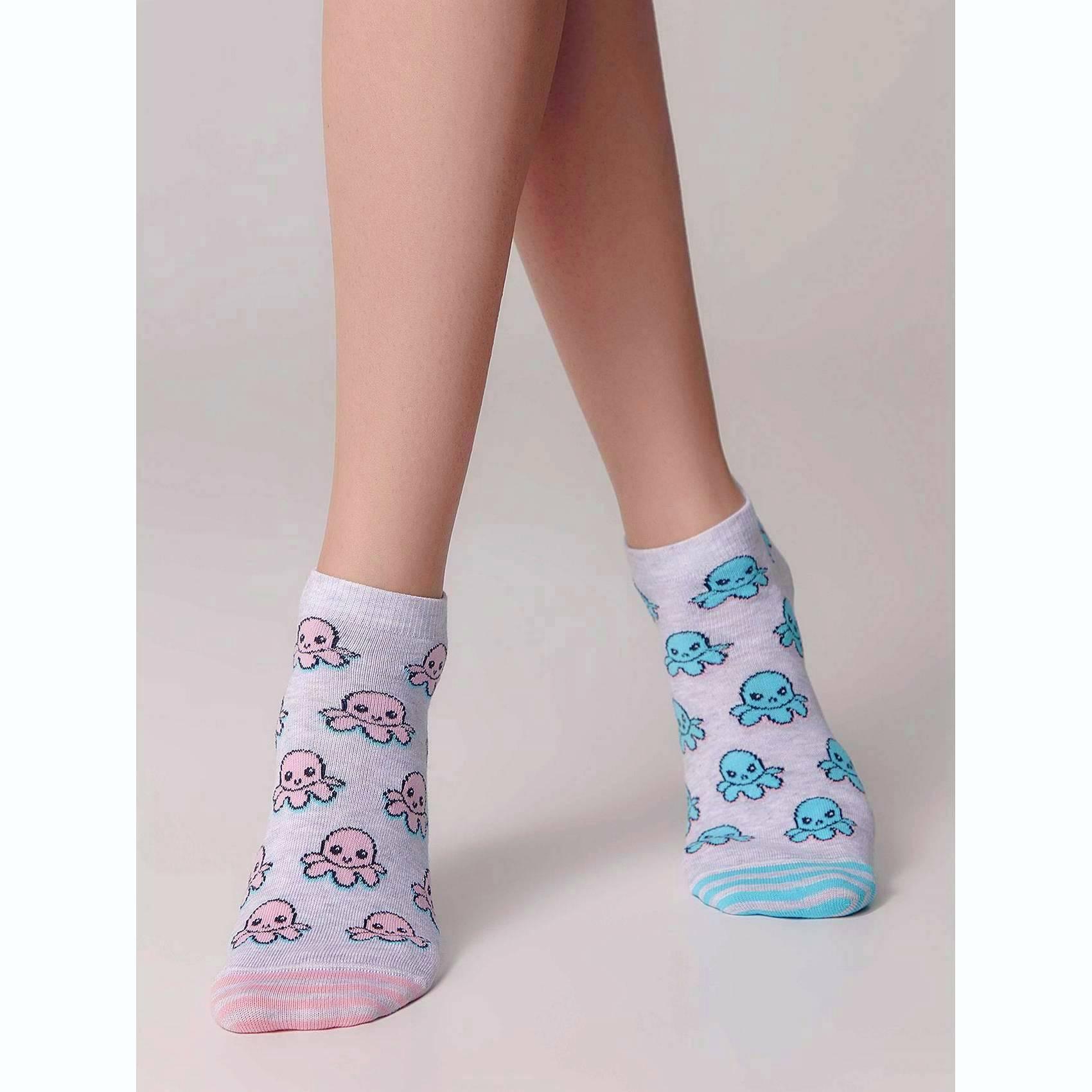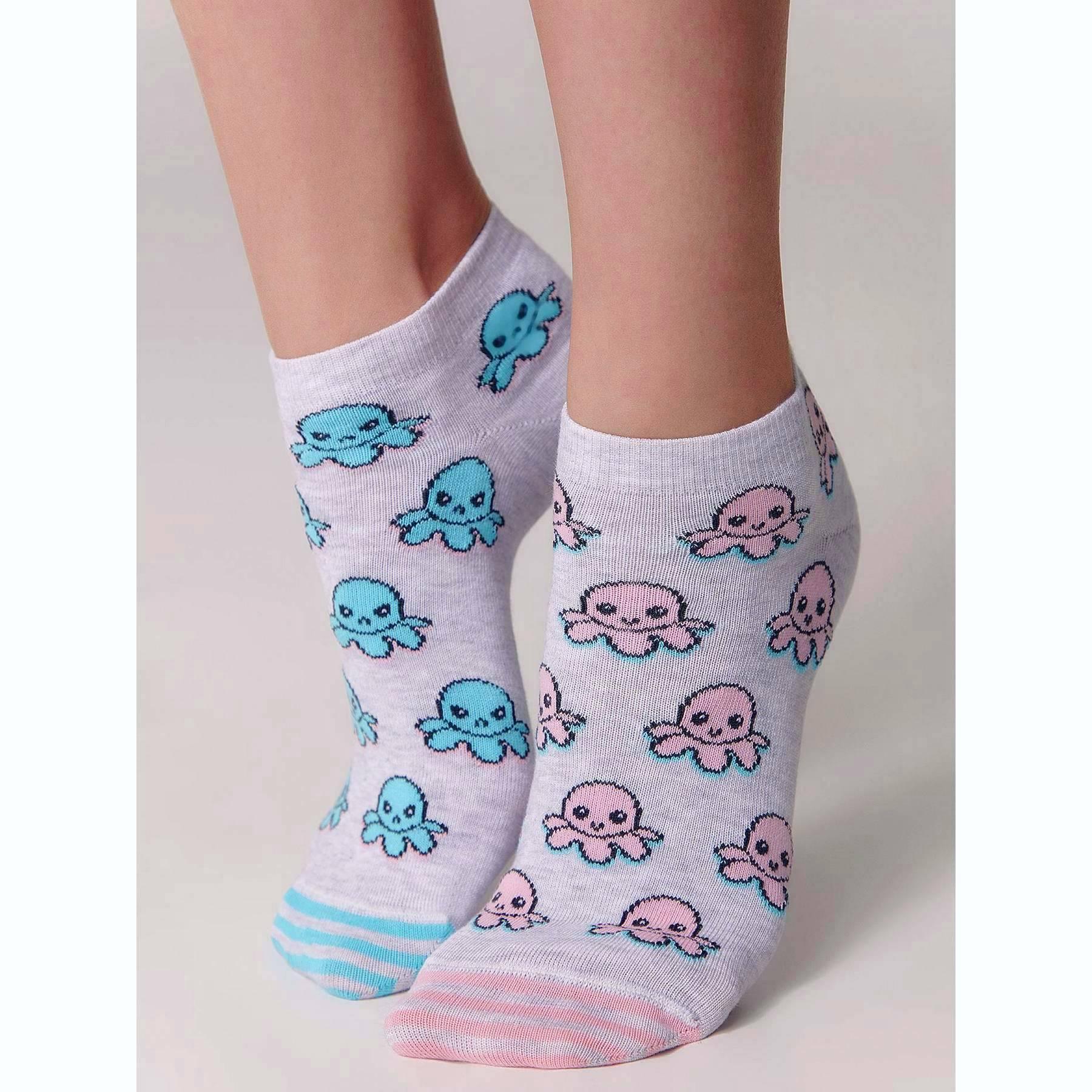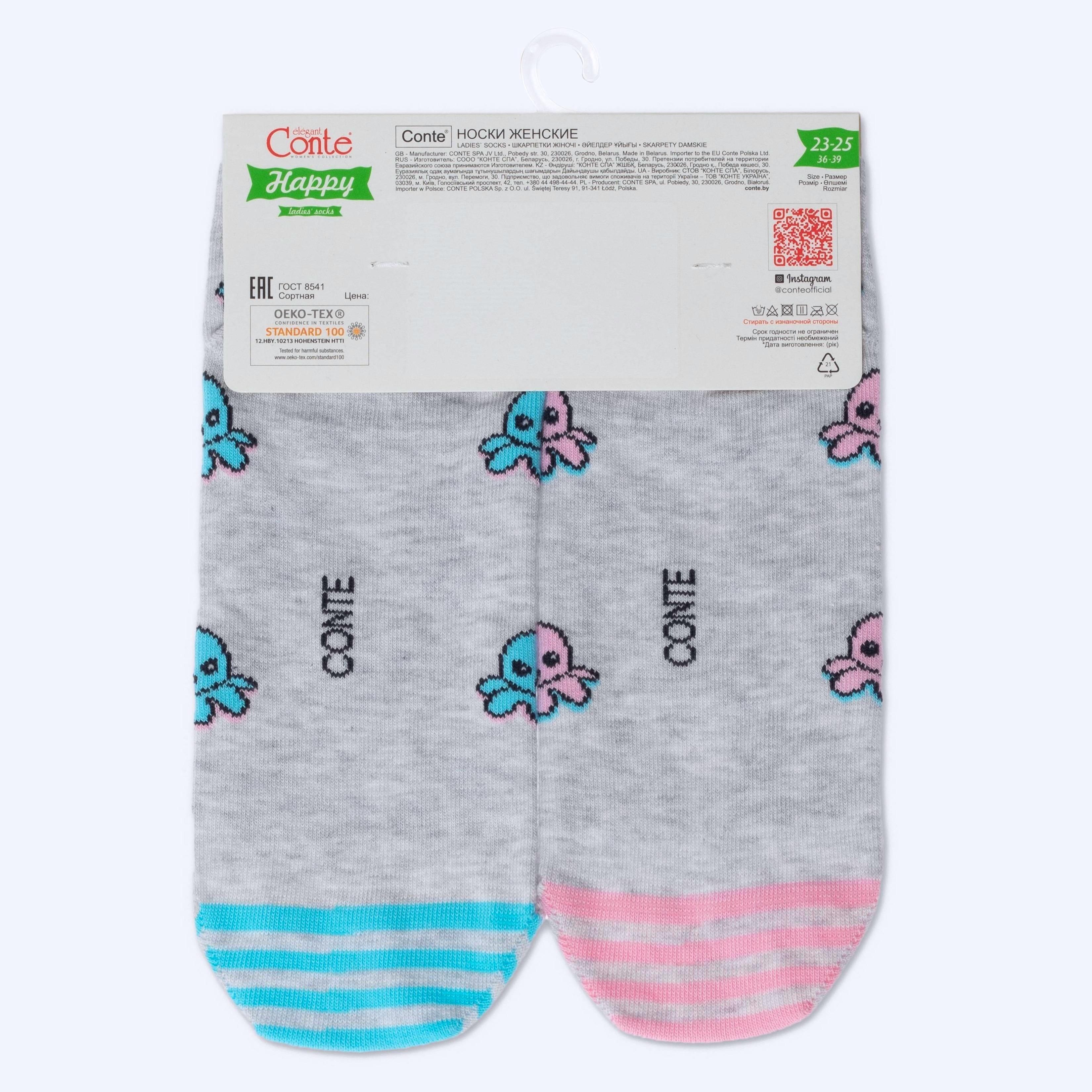 Летние ультракороткие женские носки, цвет светло-серый, разного цвета, повседневные, шов кеттельный (бесшовная технология), принт (рисунок): животные, с узором, состав: 67% хлопок, 31% полиамид, 2% эластан, арт. 19С-114СП. Производитель «Conte, Беларусь» под брендом «Conte».