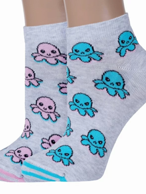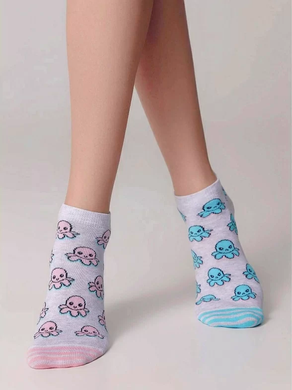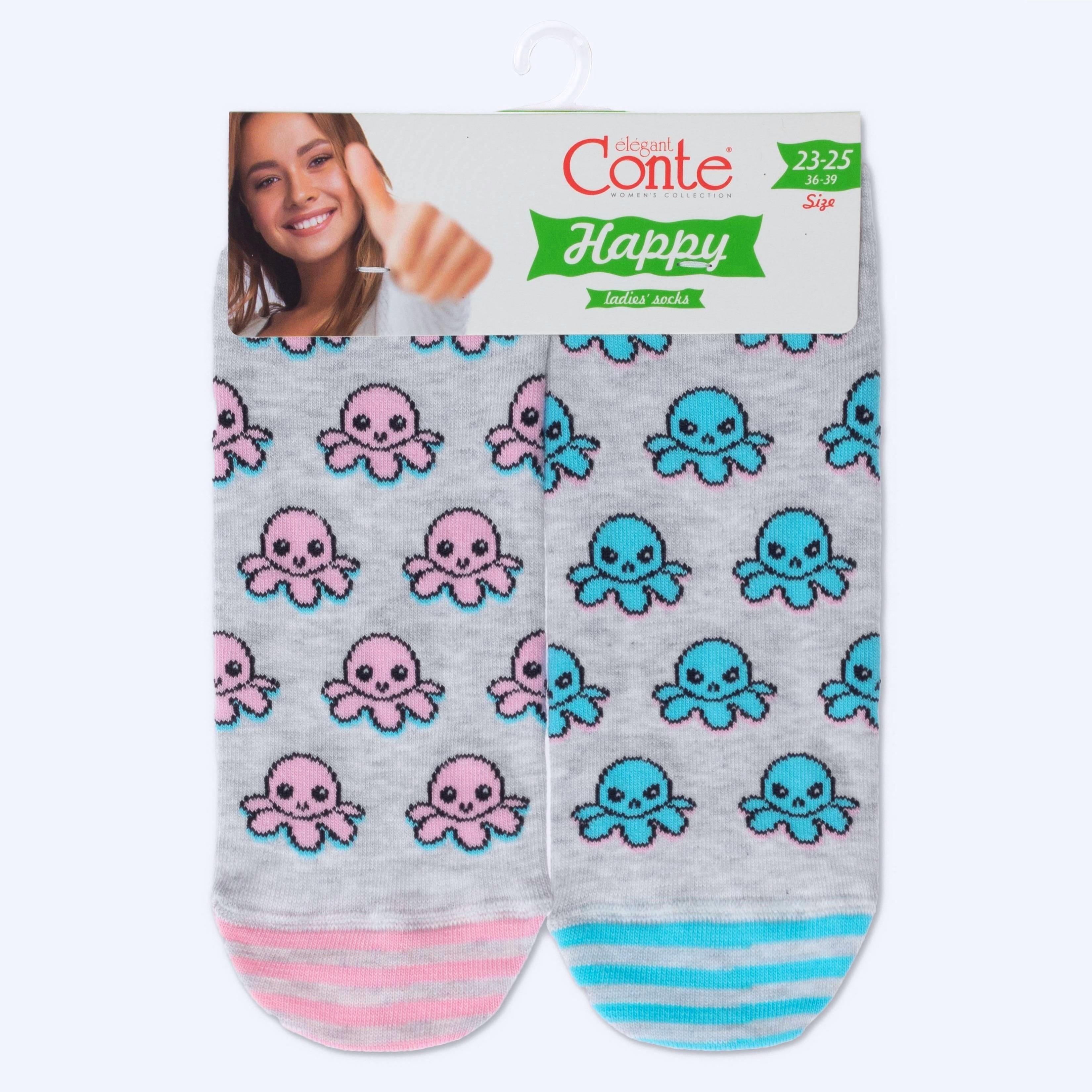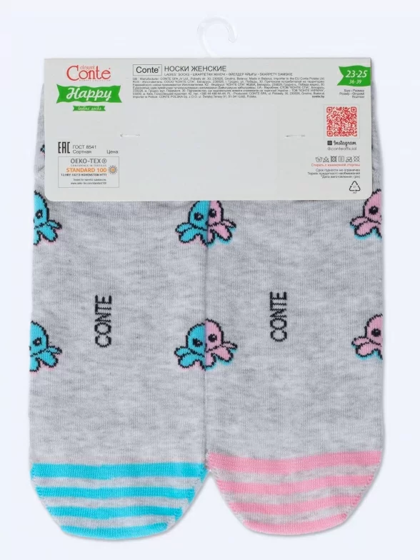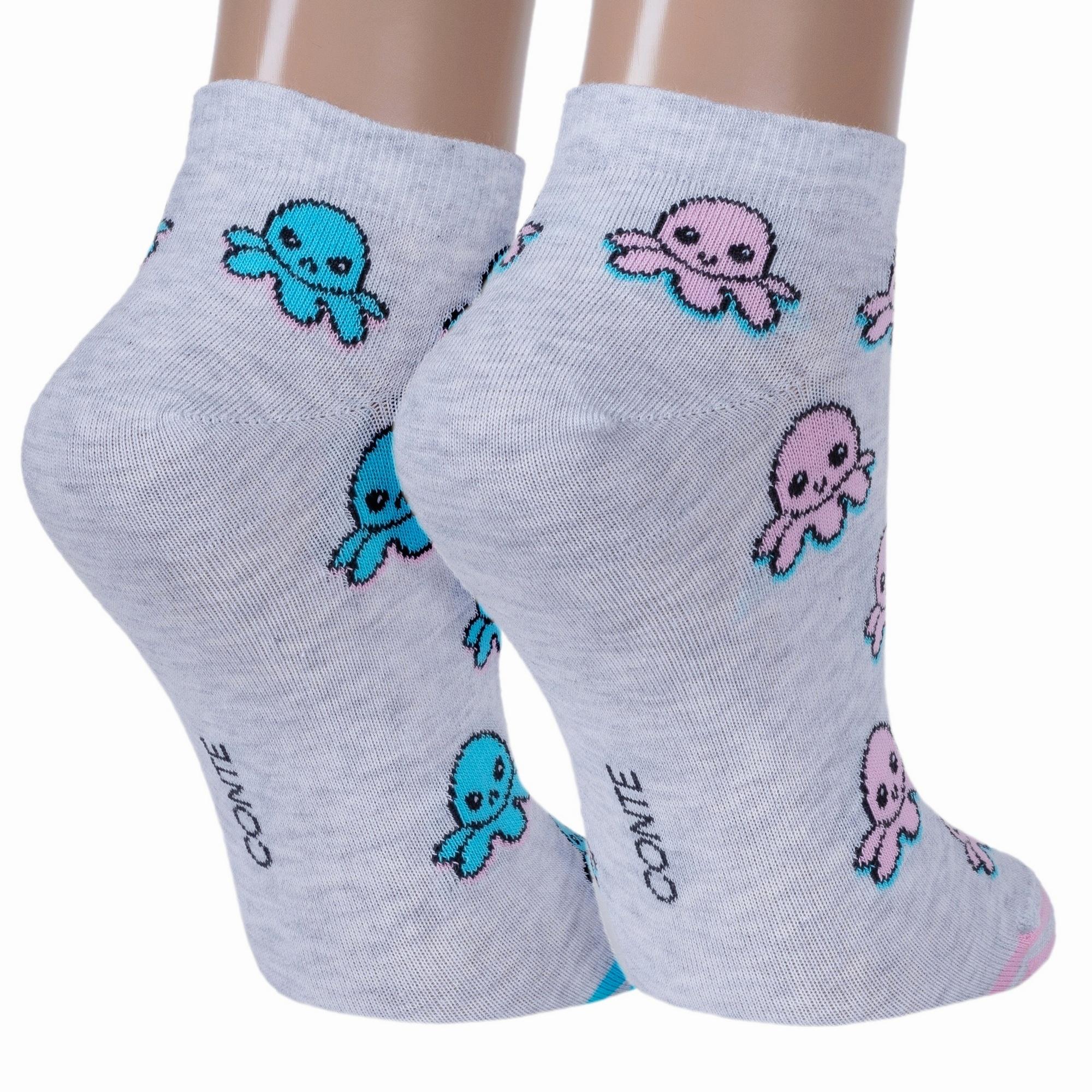 Летние ультракороткие женские носки, цвет светло-серый, разного цвета, повседневные, шов кеттельный (бесшовная технология), принт (рисунок): животные, с узором, состав: 67% хлопок, 31% полиамид, 2% эластан, арт. 19С-114СП. Производитель «Conte, Беларусь» под брендом «Conte».