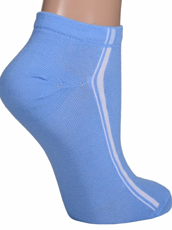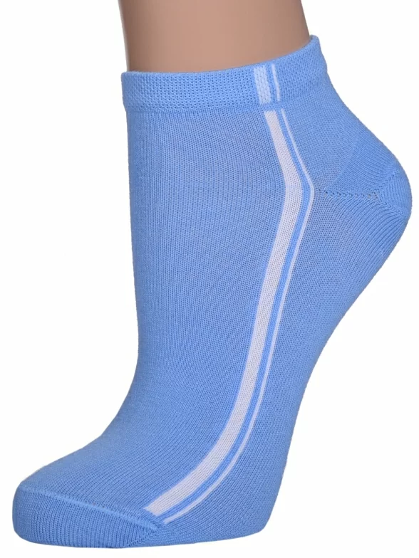 Круглогодичные короткие женские носки, цвет голубой, спортивные, шов обычный (не бесшовные), принт (рисунок): полоски, с узором, состав: 85% хлопок, 10% полиамид, 5% эластан (лайкра), арт. С8. Производитель «ИП Мурзаков В.А., Ставропольский край, Россия» под брендом «Lorenzline».