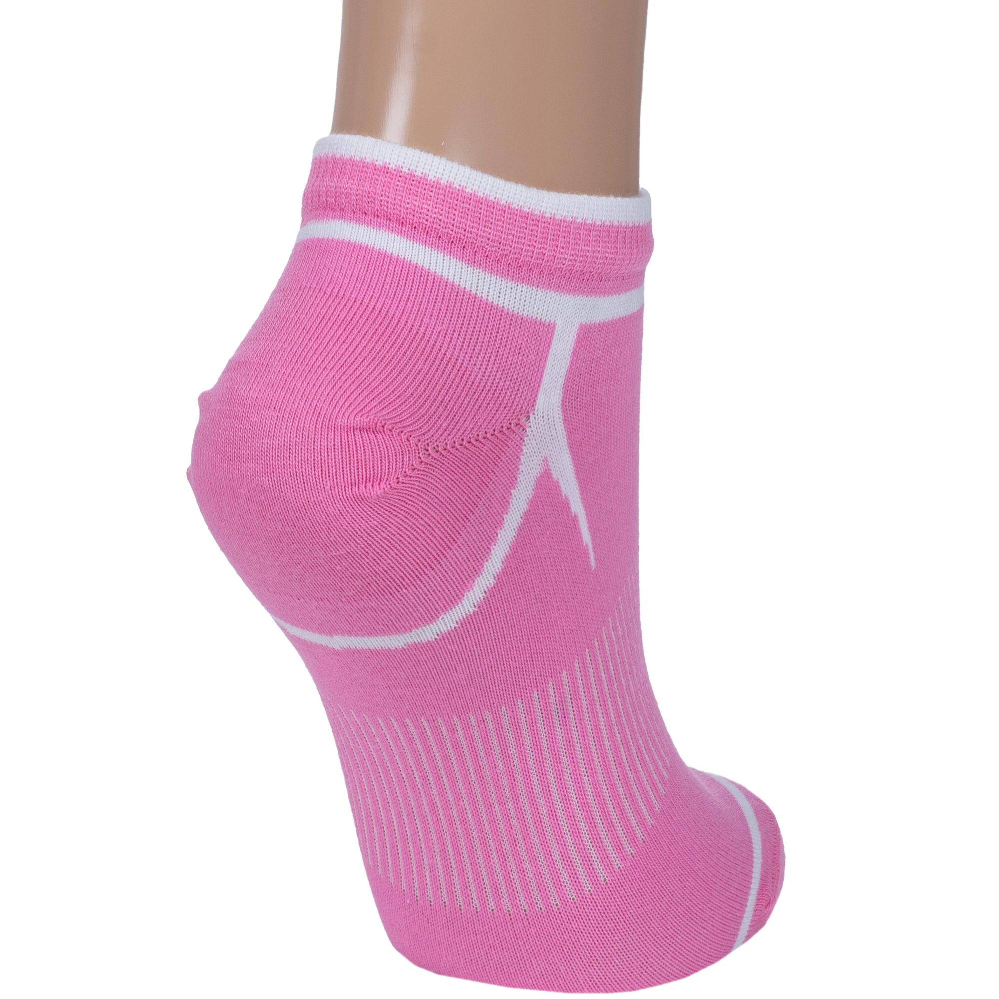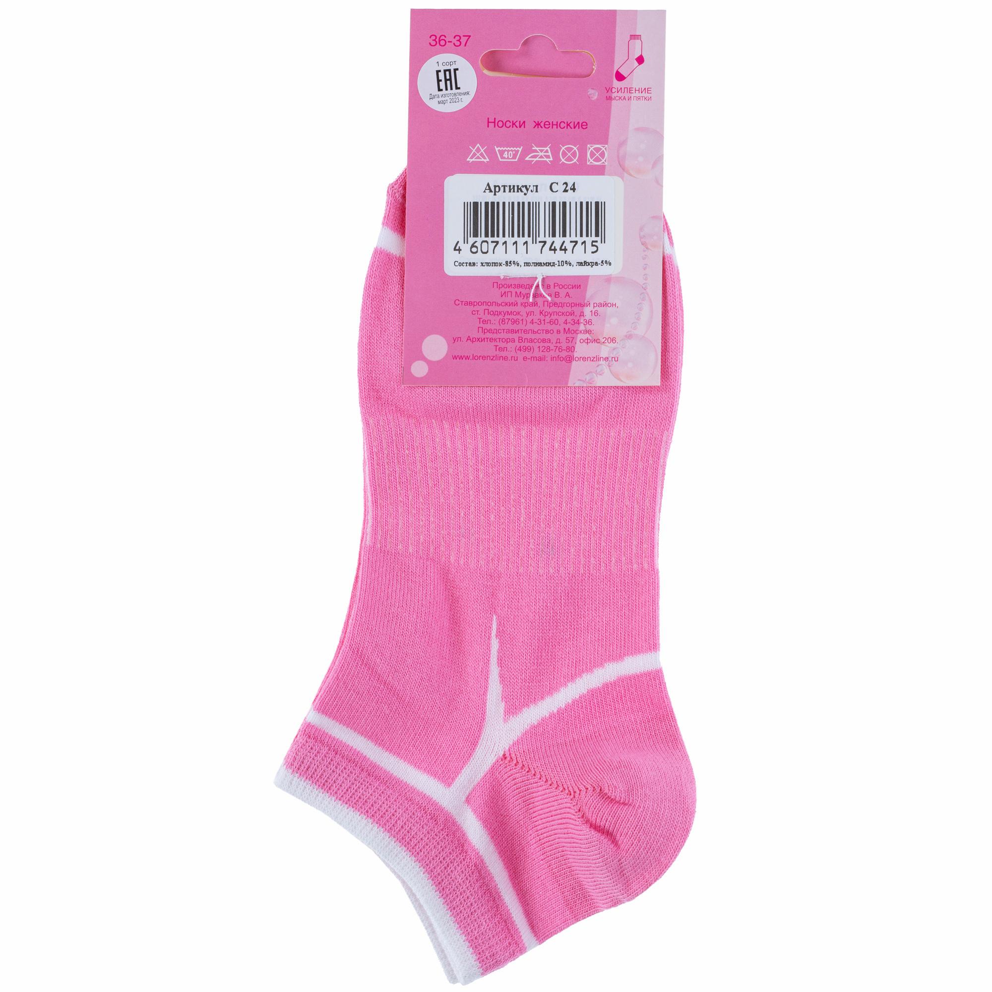 Круглогодичные короткие женские носки, цвет розовый, спортивные, шов обычный (не бесшовные), принт (рисунок): спортивные, контрастные пятка / мысок / резинка, с узором, состав: 85% хлопок, 10% полиамид, 5% эластан (лайкра), арт. С24. Производитель «ИП Мурзаков В.А., Ставропольский край, Россия» под брендом «Lorenzline».