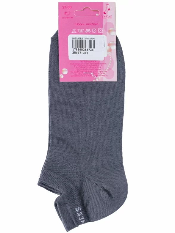 Круглогодичные короткие женские носки, цвет серый, спортивные, шов обычный (не бесшовные), принт (рисунок): спортивные, однотонный, небольшой рисунок, состав: 85% хлопок, 10% полиамид, 5% эластан (лайкра), арт. С7. Производитель «ИП Мурзаков В.А., Ставропольский край, Россия» под брендом «Lorenzline».