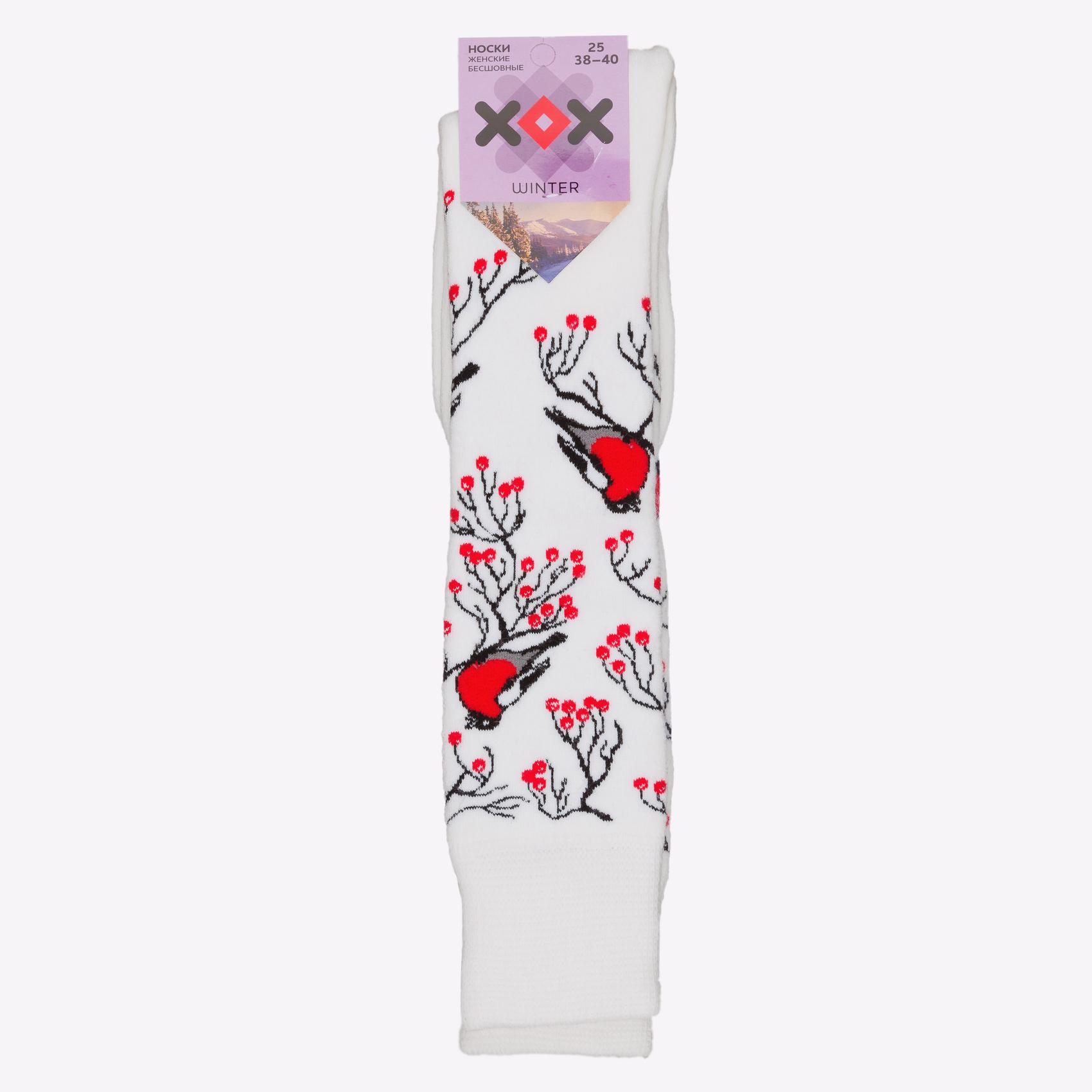 Зимние женские гольфы, цвет белый, теплые, махровые, повседневные, возможно бесшовные, принт (рисунок): животные, новый год, с узором, состав: 65% акрил, 30% полиамид, 5% эластан, арт. Z-1703. Производитель «ХОХ» Россия под брендом «Хох».