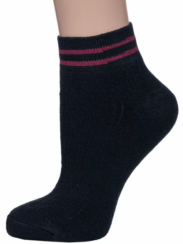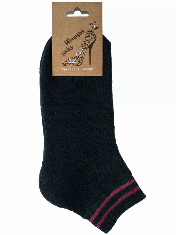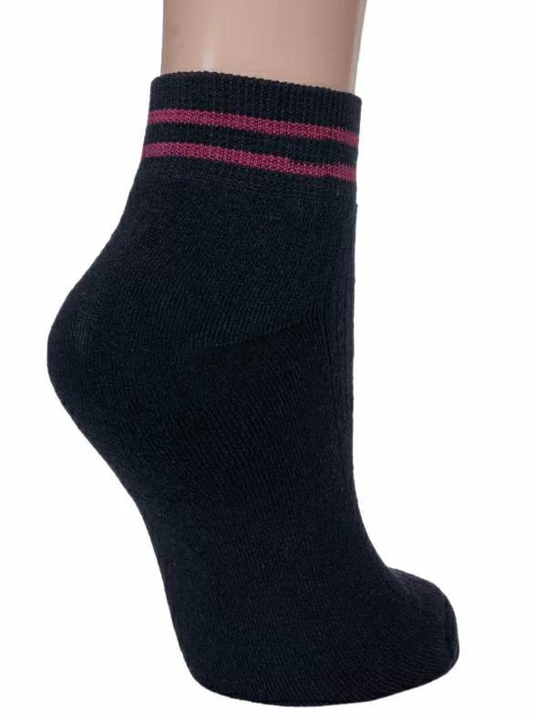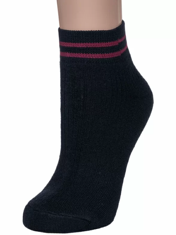 Женские махровые носки Альтаир, С186, ЧЕРНЫЕ с бордовыми полосками
