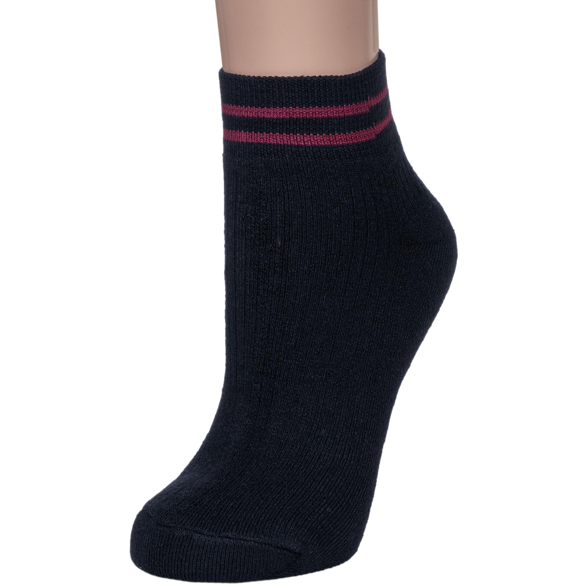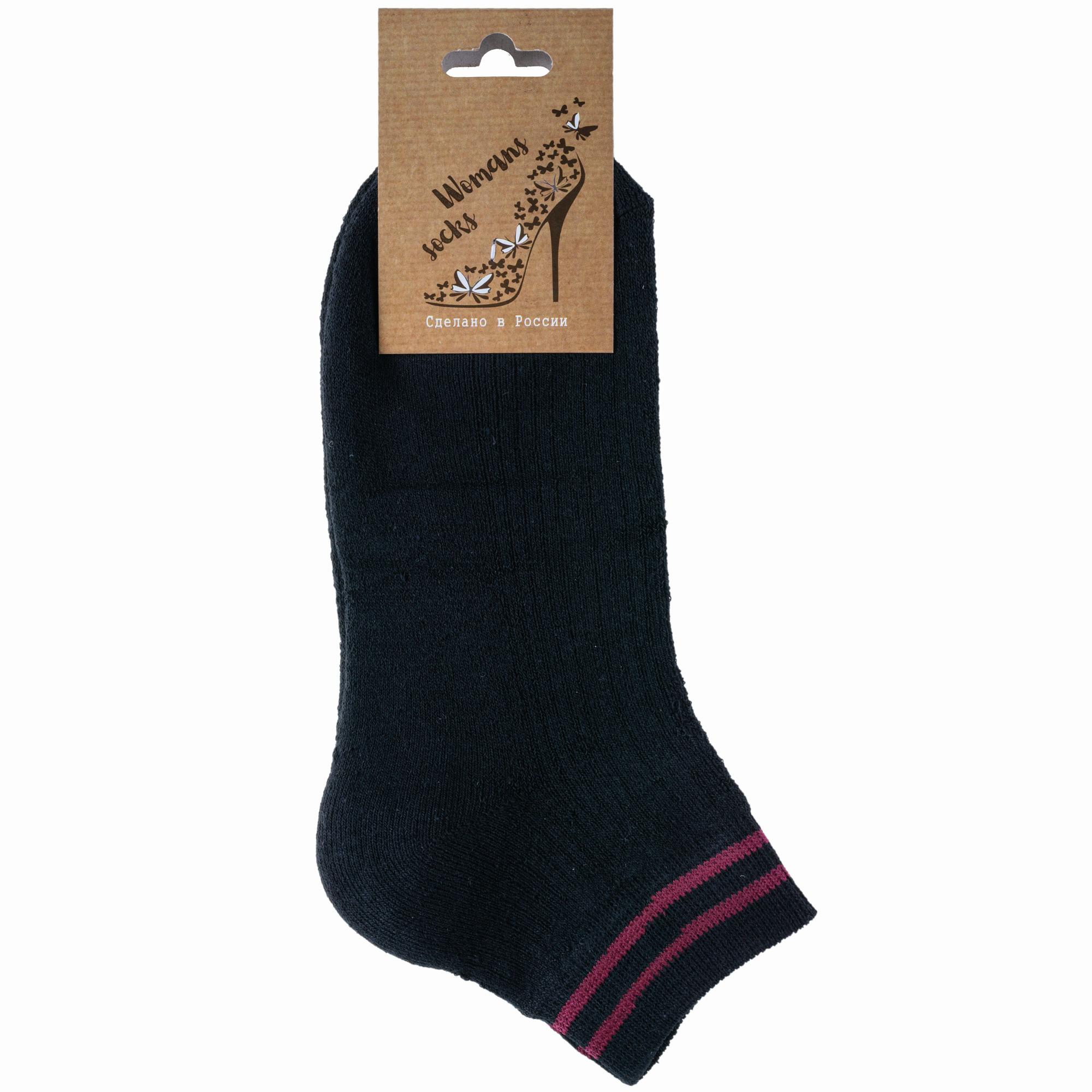Женские махровые носки Альтаир С186, ЧЕРНЫЕ с бордовыми полосками