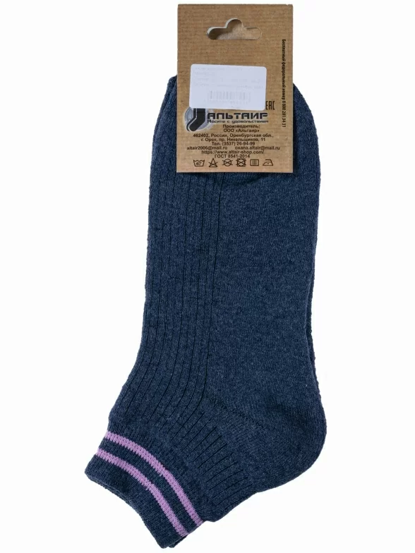 Женские махровые носки Альтаир, С186, ДЖИНС с розовыми полосками