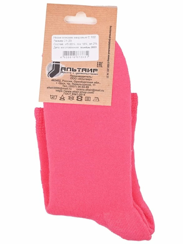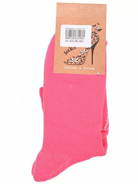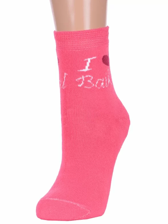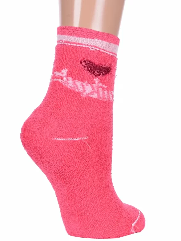 Межсезонные или зимние укороченные женские носки, цвет розовый, теплые, повседневные, махровые, возможно бесшовные, принт (рисунок): сердечки / поцелуи / любовь, надписи, с узором, состав: 80% хлопок, 18% полиамид, 2% эластан, арт. С102. Производитель «ООО Альтаир, г. Орск, Оренбургская обл, Россия» под брендом «Альтаир».