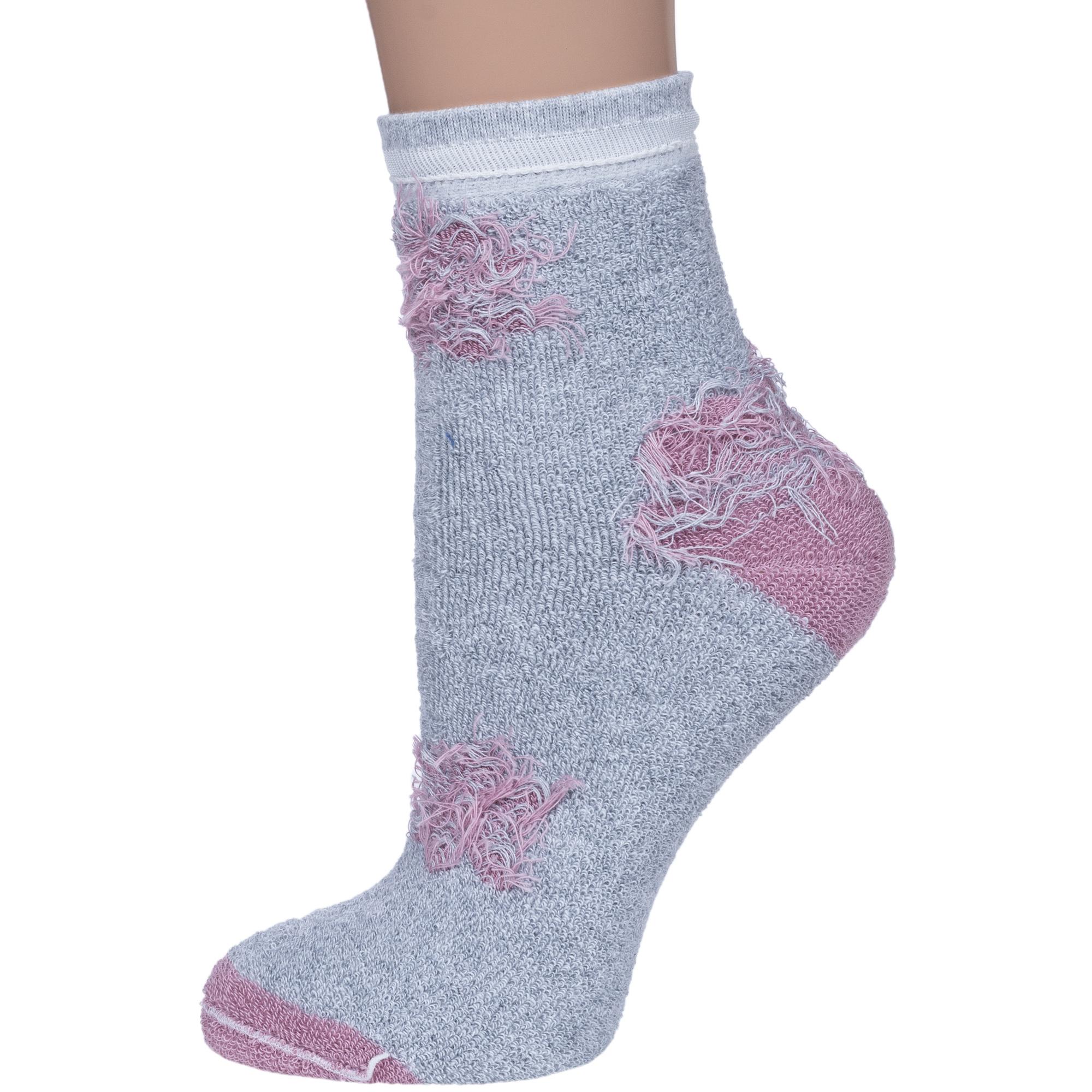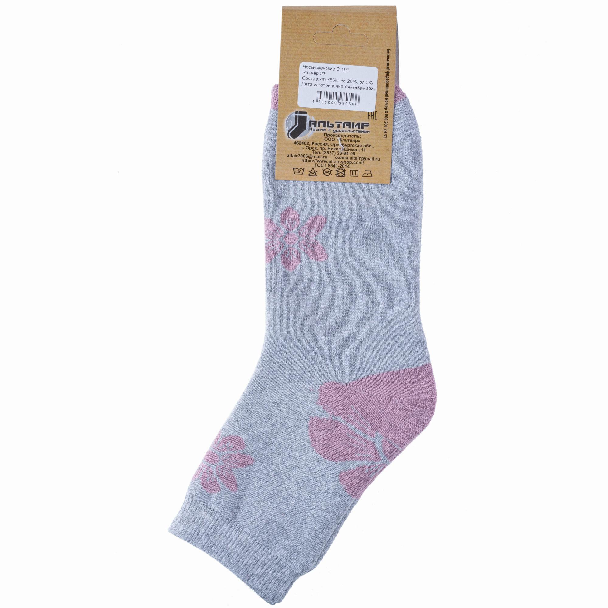 Зимние укороченные женские носки, цвет светло-серый, теплые, повседневные, махровые, шов обычный (не бесшовные), принт (рисунок): цветы / растения, с узором, состав: 78% хлопок, 20% полиамид, 2% эластан, арт. С191. Производитель «ООО Альтаир, г. Орск, Оренбургская обл, Россия» под брендом «Альтаир».