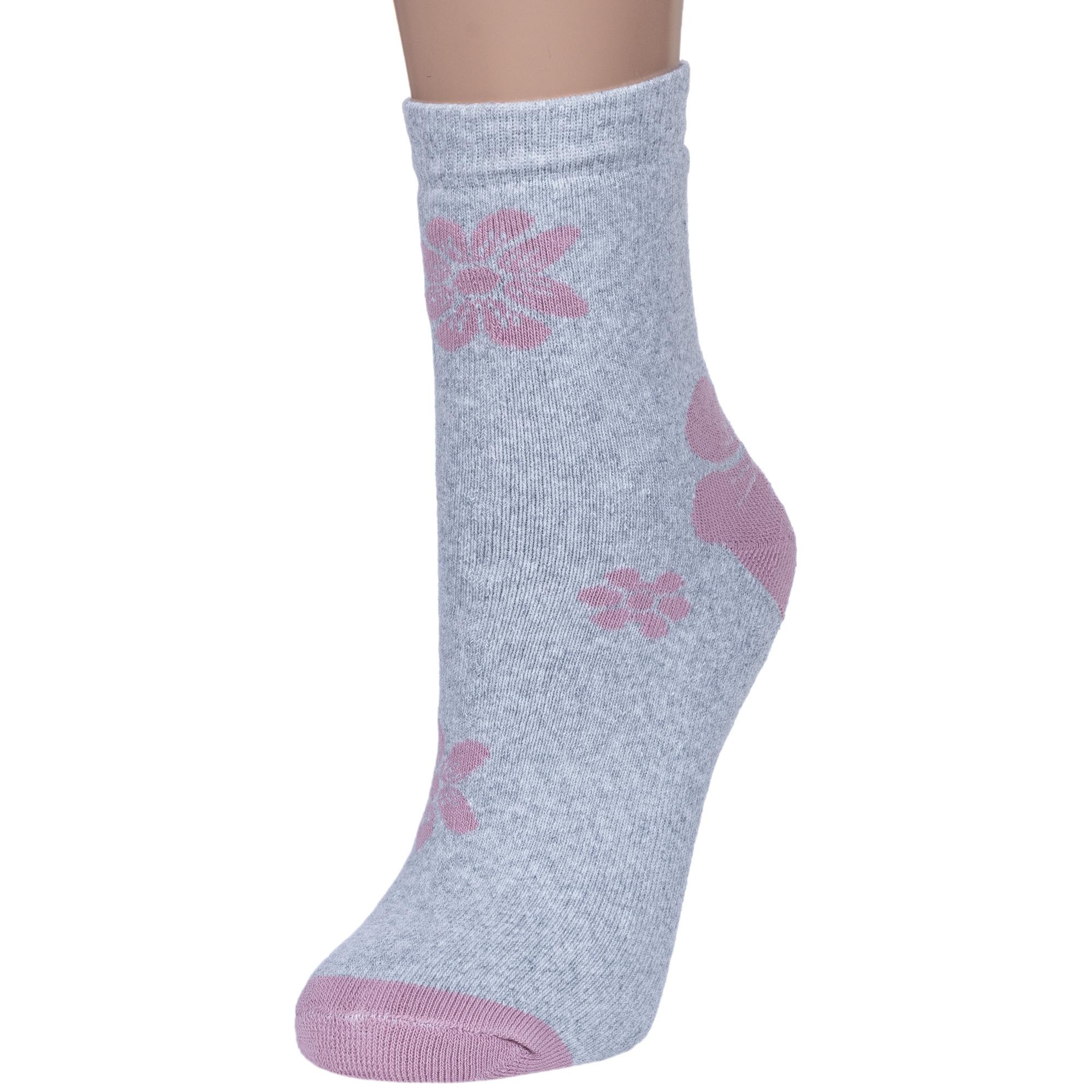 Женские махровые носки Альтаир С191, СВЕТЛО-СЕРЫЕ с розовыми цветами