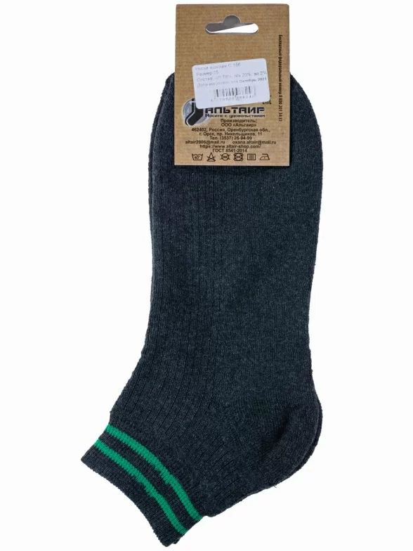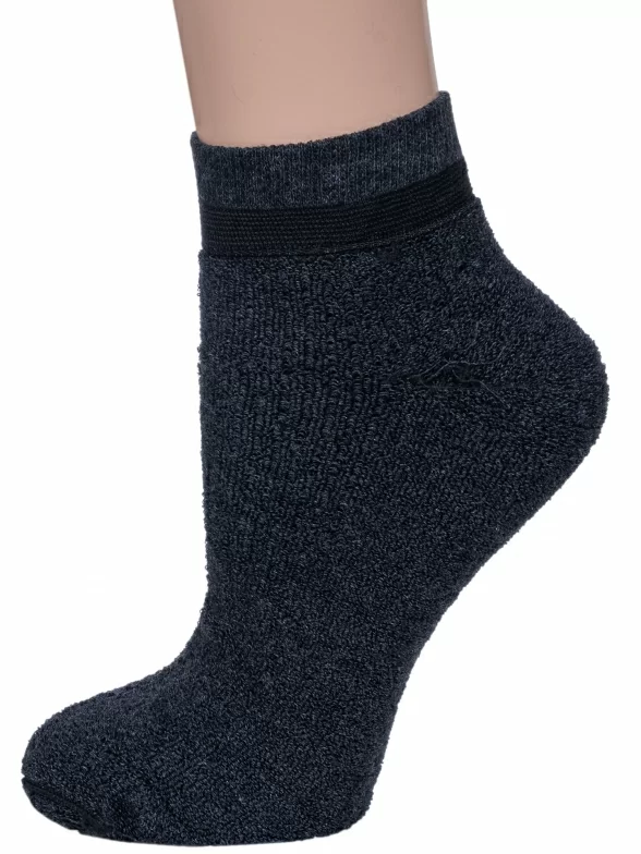 Зимние короткие женские носки, цвет темно-серый, теплые, махровые, классические, шов обычный (не бесшовные), принт (рисунок): полоски, контрастные пятка / мысок / резинка, с узором, состав: 78% хлопок, 20% полиамид, 2% эластан, арт. С186. Производитель «ООО Альтаир, г. Орск, Оренбургская обл, Россия» под брендом «Альтаир».