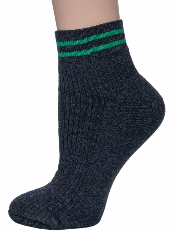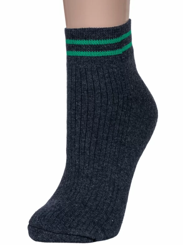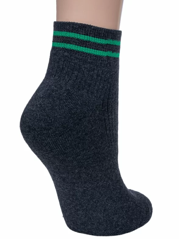 Женские махровые носки Альтаир, С186, ТЕМНО-СЕРЫЕ с зелеными полосками