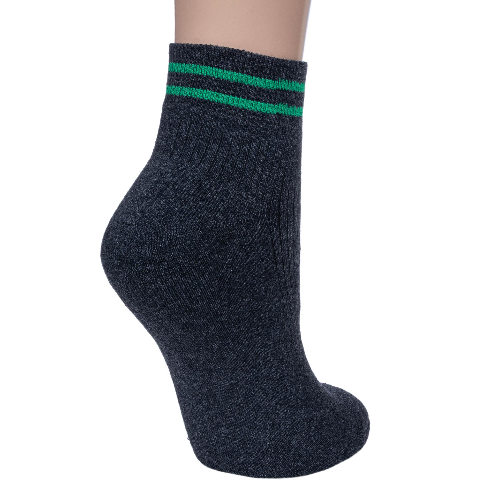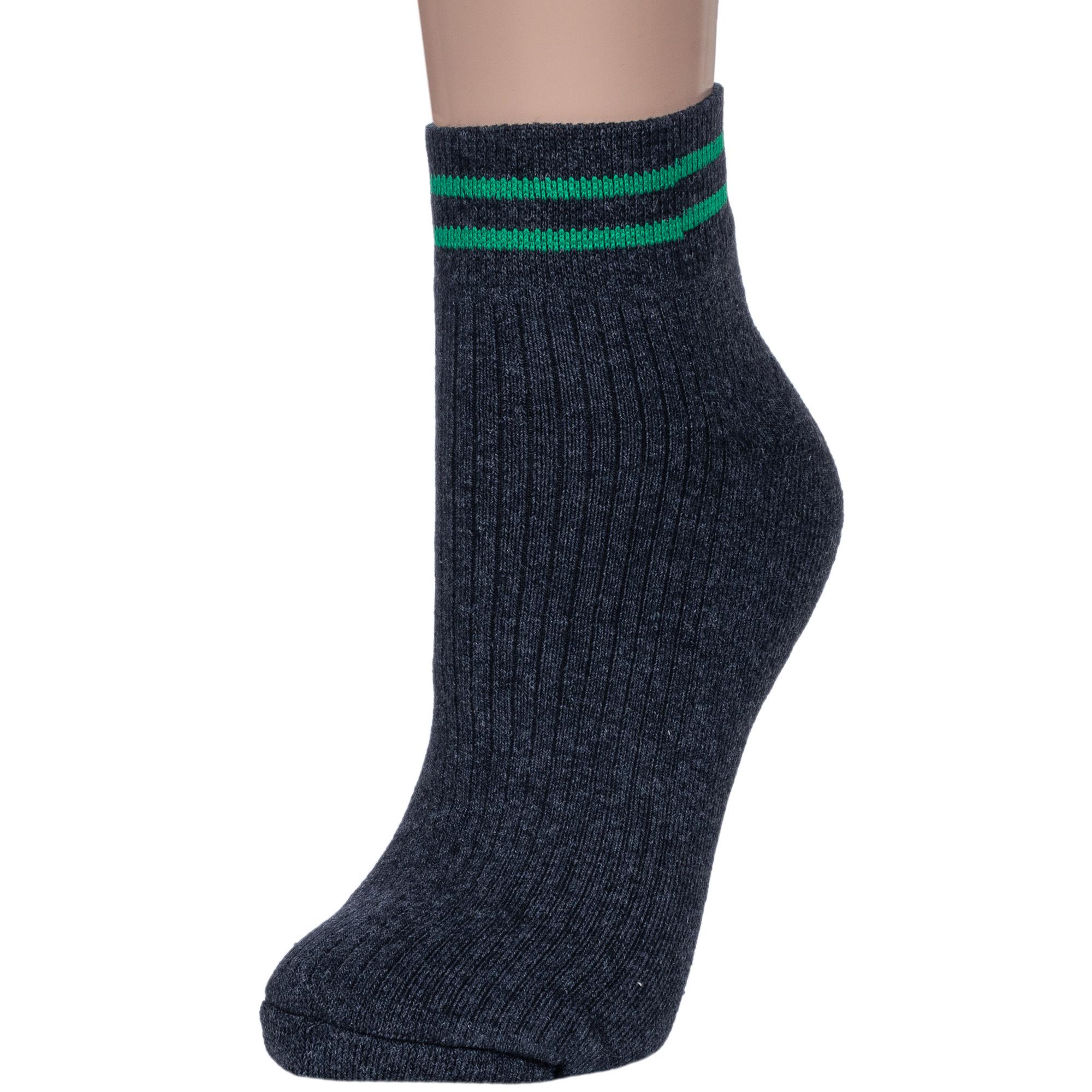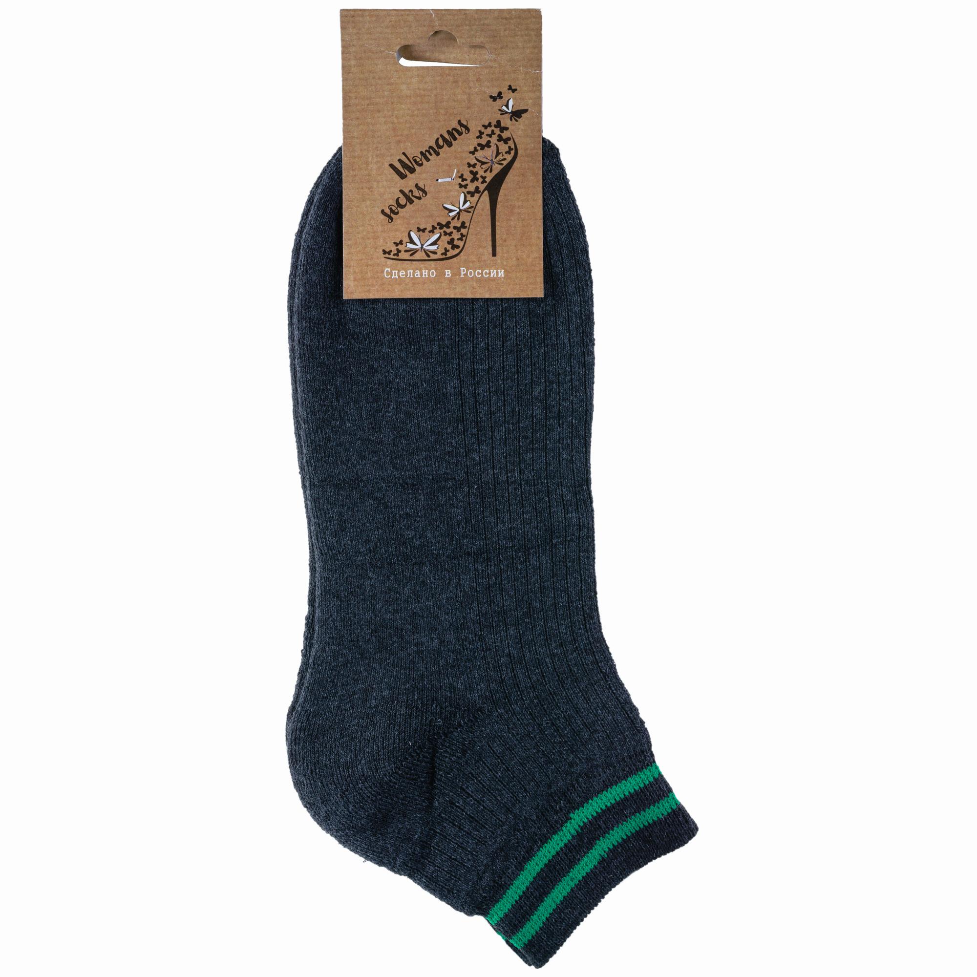 Женские махровые носки Альтаир С186, ТЕМНО-СЕРЫЕ с зелеными полосками