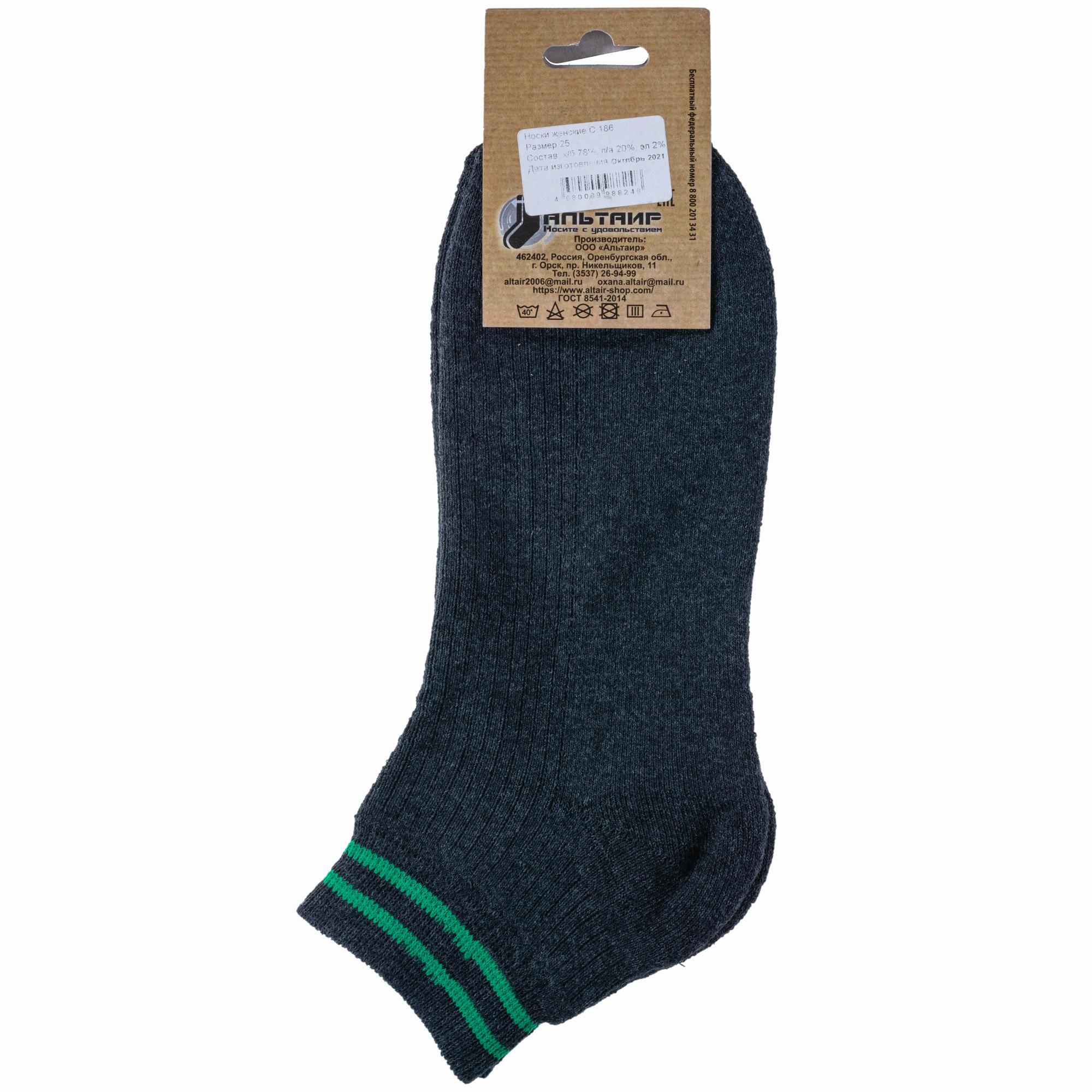 Зимние короткие женские носки, цвет темно-серый, теплые, махровые, классические, шов обычный (не бесшовные), принт (рисунок): полоски, контрастные пятка/мысок/резинка, с узором, состав: 78% хлопок, 20% полиамид, 2% эластан, арт. С186. Производитель «ООО Альтаир, г. Орск, Оренбургская обл, Россия» под брендом «Альтаир».