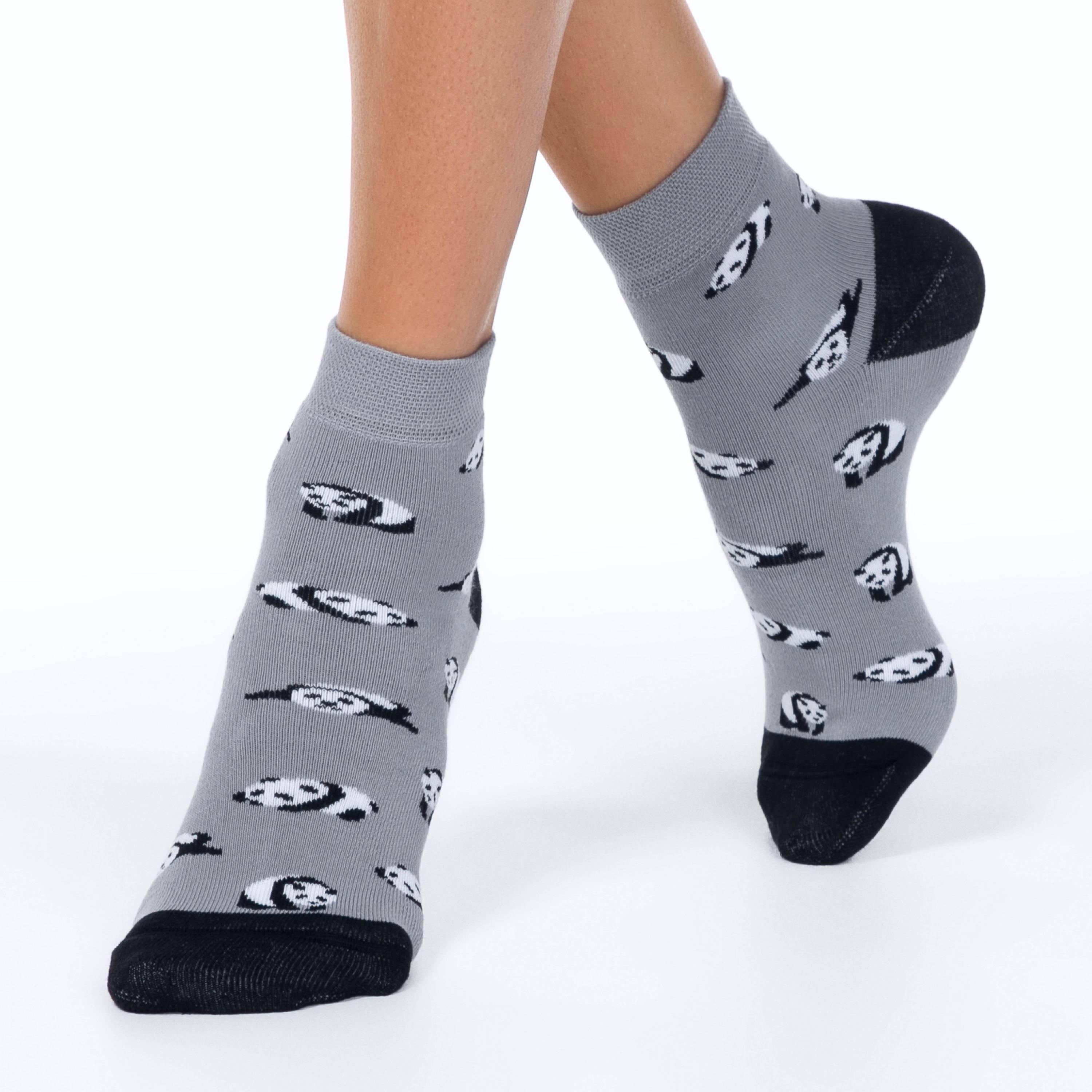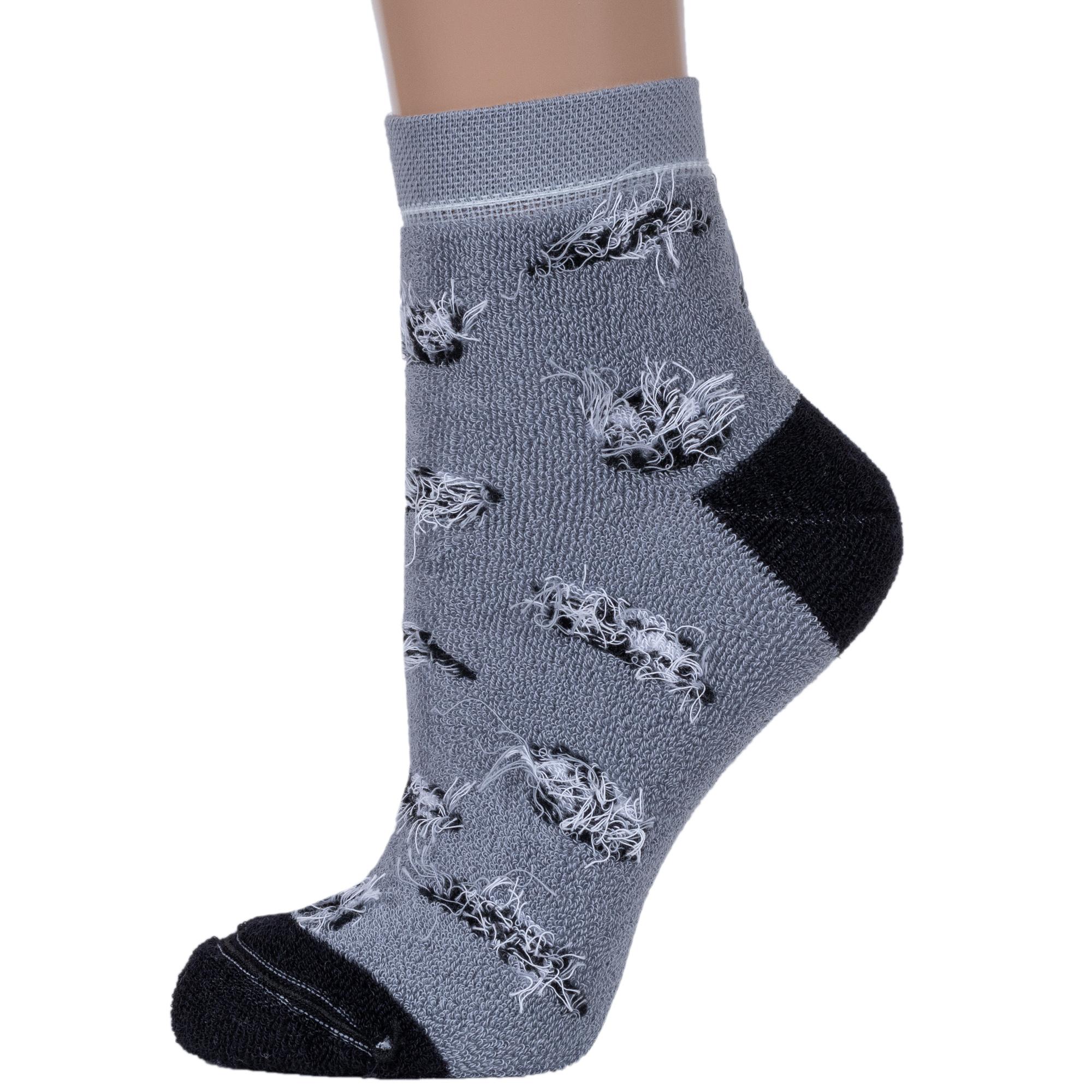Зимние укороченные женские носки, цвет светло-серый, теплые, махровые, повседневные, шов кеттельный (бесшовная технология), принт (рисунок): животные, с узором, состав: 81% хлопок, 18% полиэстер, 1% эластан, арт. 14С1407. Производитель «Брестский чулочный комбинат ОАО, Беларусь» под брендом «Брестские (бчк)».