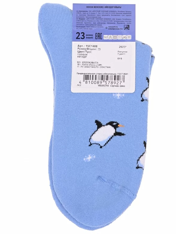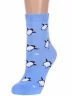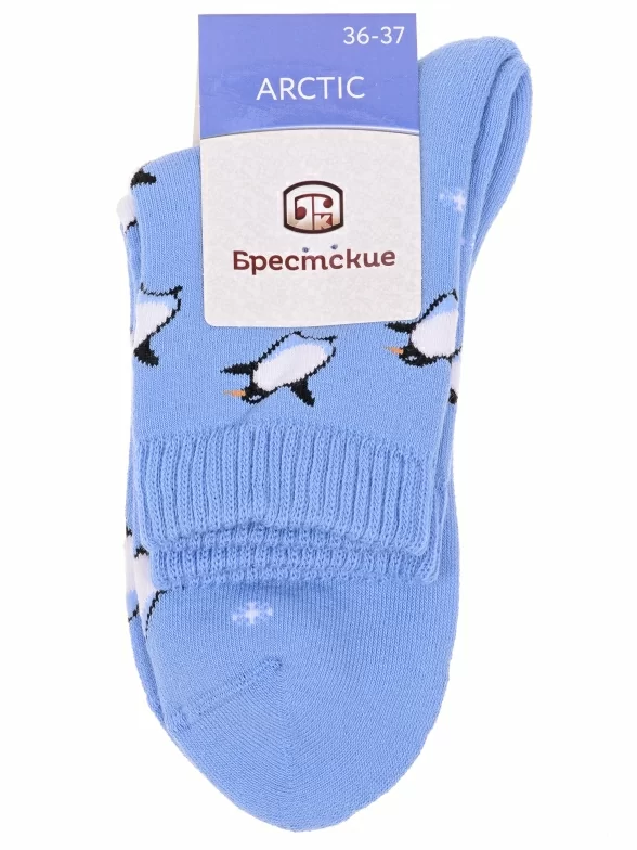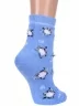 Межсезонные или зимние укороченные женские носки, цвет голубой, теплые, повседневные, махровые, шов кеттельный (бесшовная технология), принт (рисунок): новый год, зимний, животные, с узором, состав: 83% хлопок, 16% полиэстер, 1% эластан, арт. 15С1408. Производитель «Брестский чулочный комбинат ОАО, Беларусь» под брендом «Брестские (бчк)».