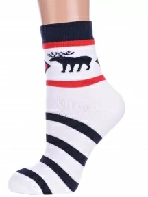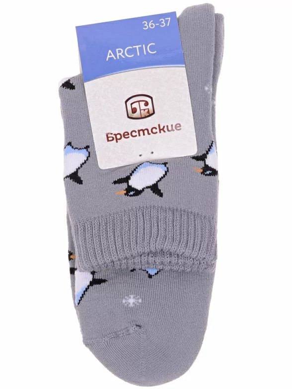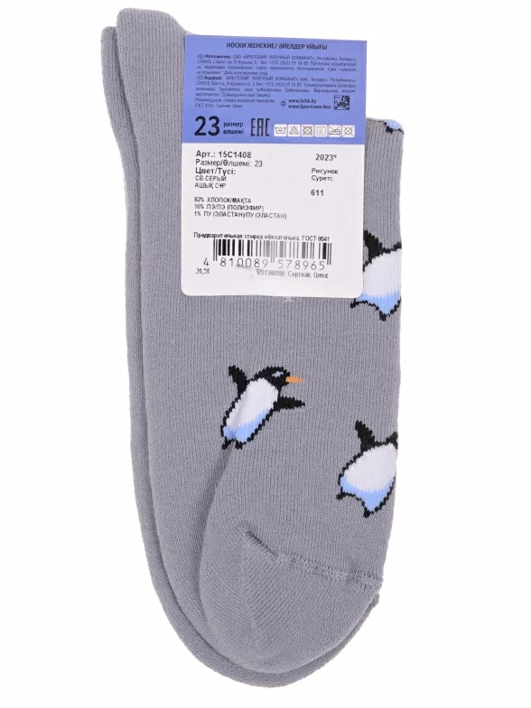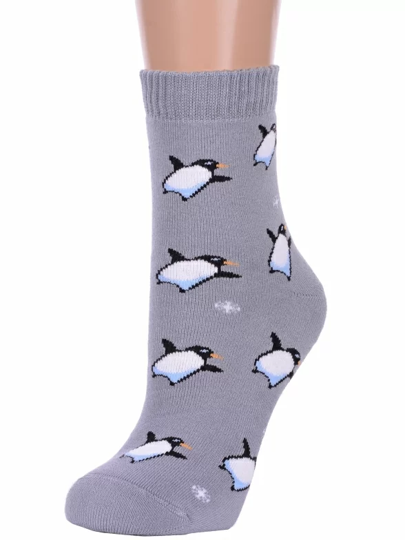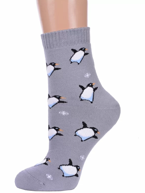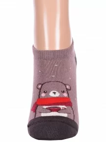 Межсезонные или зимние укороченные женские носки, цвет светло-серый, теплые, повседневные, махровые, шов кеттельный (бесшовная технология), принт (рисунок): новый год, зимний, животные, с узором, состав: 83% хлопок, 16% полиэстер, 1% эластан, арт. 15С1408. Производитель «Брестский чулочный комбинат ОАО, Беларусь» под брендом «Брестские (бчк)».
