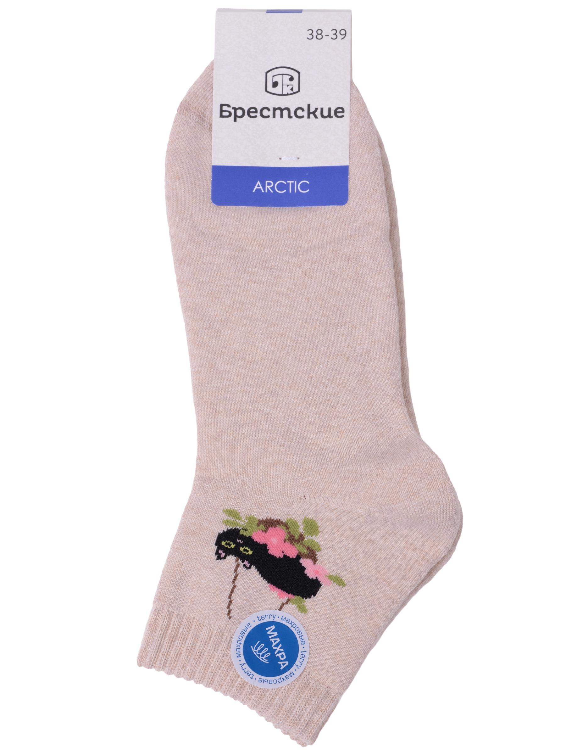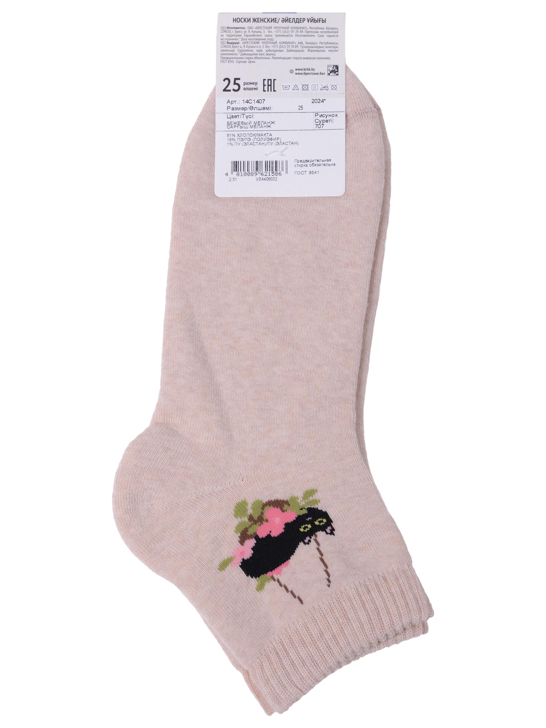 Зимние укороченные женские носки, цвет бежевый, махровые, шов кеттельный (бесшовная технология), принт (рисунок): цветы / растения, животные, состав: 81% хлопок, 18% полиэстер, 1% эластан, арт. 14С1407. Производитель «Брестский чулочный комбинат ОАО, Беларусь» под брендом «Брестские (бчк)».