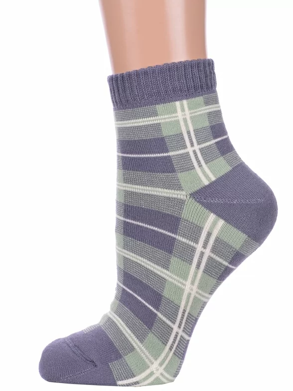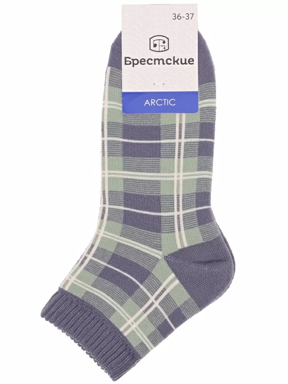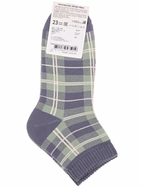 Межсезонные или зимние укороченные женские носки, цвет серый, теплые, повседневные, махровые, шов кеттельный (бесшовная технология), принт (рисунок): клетка, с узором, состав: 81% хлопок, 18% полиэстер, 1% полиуретан, арт. 14С1407. Производитель «Брестский чулочный комбинат ОАО, Беларусь» под брендом «Брестские (бчк)».
