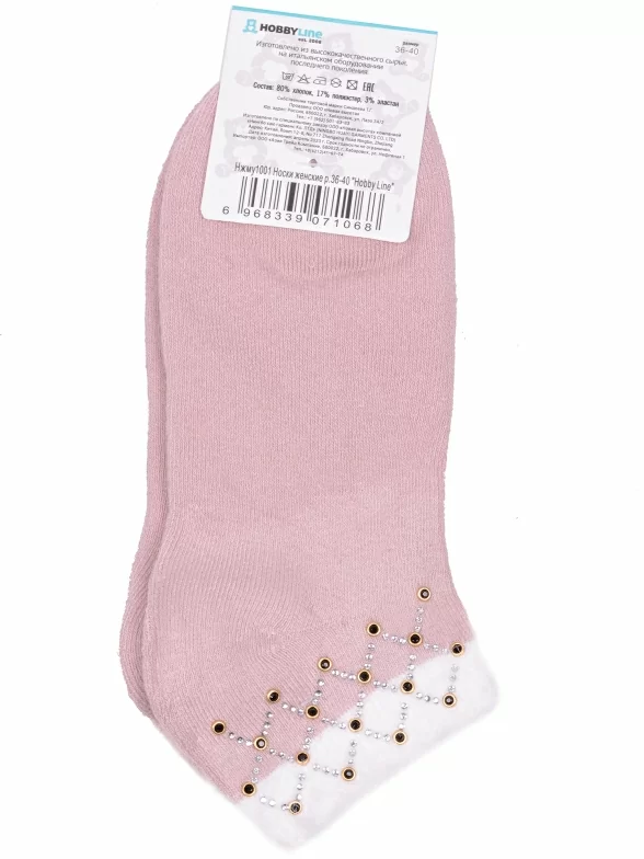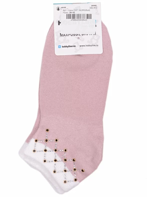 Межсезонные короткие женские носки, цвет бежевый, теплые, с украшениями, необычные, махровые, возможно бесшовные, принт (рисунок): контрастные пятка / мысок / резинка, геометрия, с узором, состав: 80% хлопок, 17% полиэстер, 3% эластан, арт. Нжму1001. Производитель «Китай, страна бренда - Россия» под брендом «Hobby line».