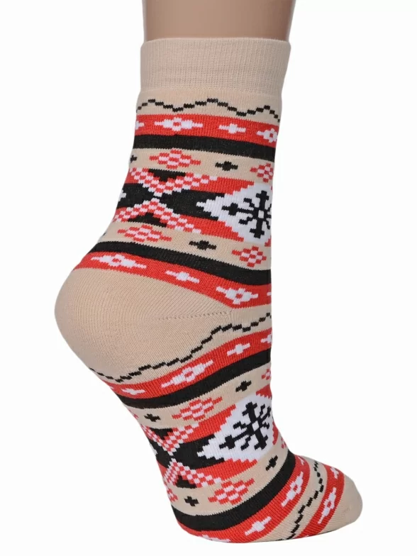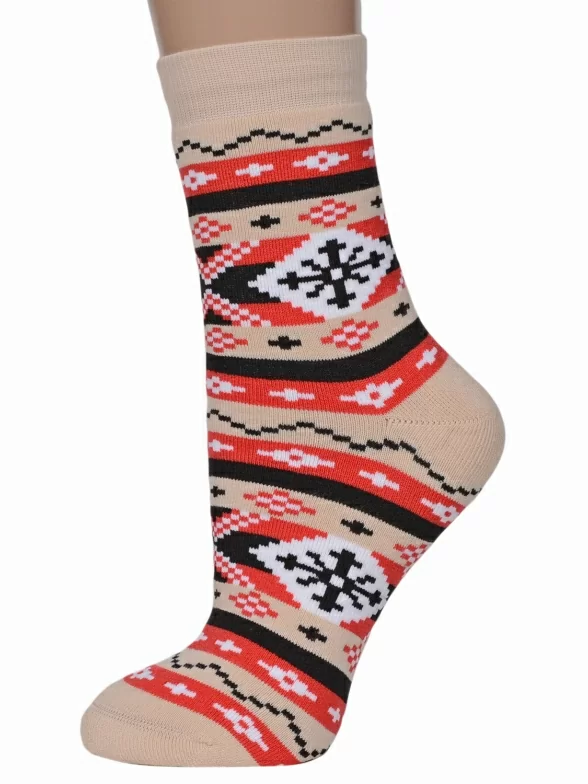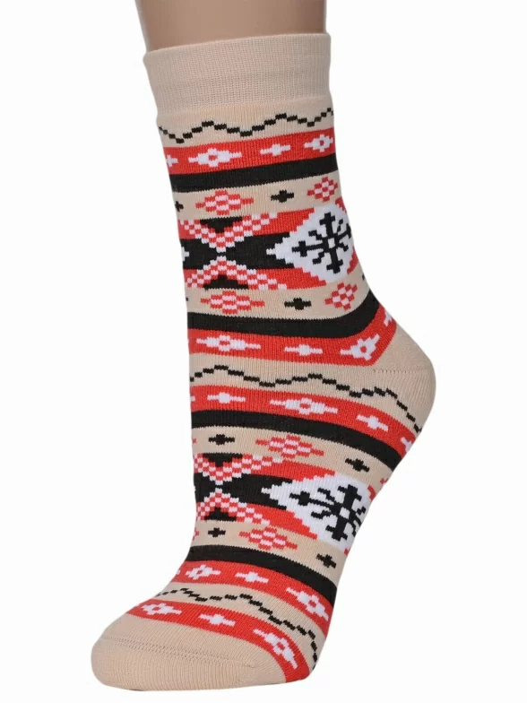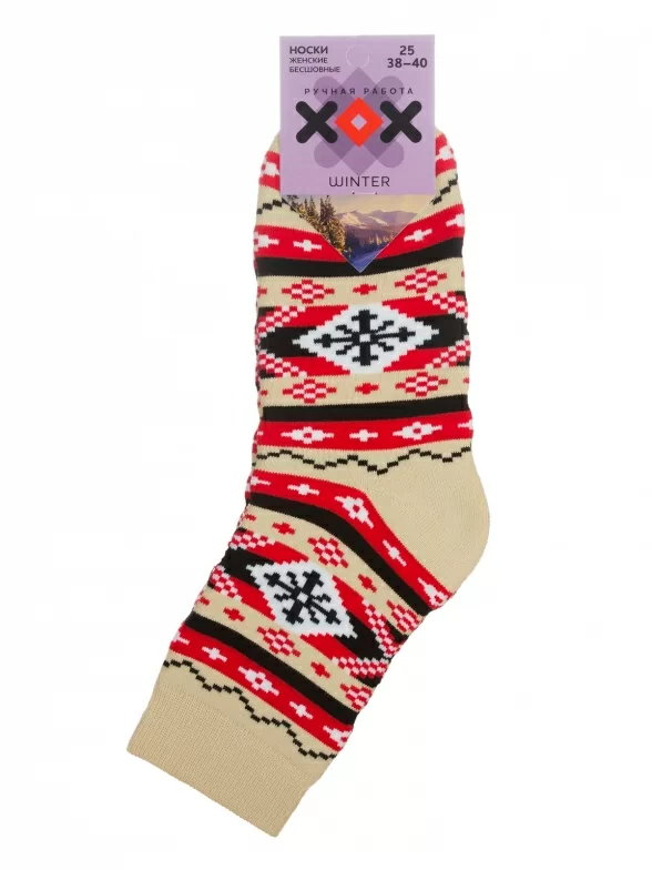 Женские махровые носки ХОХ, GZ-3R18, КРЕМОВО-КРАСНЫЕ
