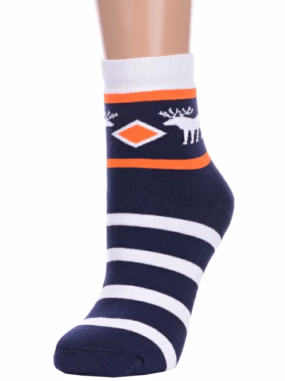 Женские махровые носки ХОХ, GZ-3R17, СИНИЕ С ОЛЕНЯМИ