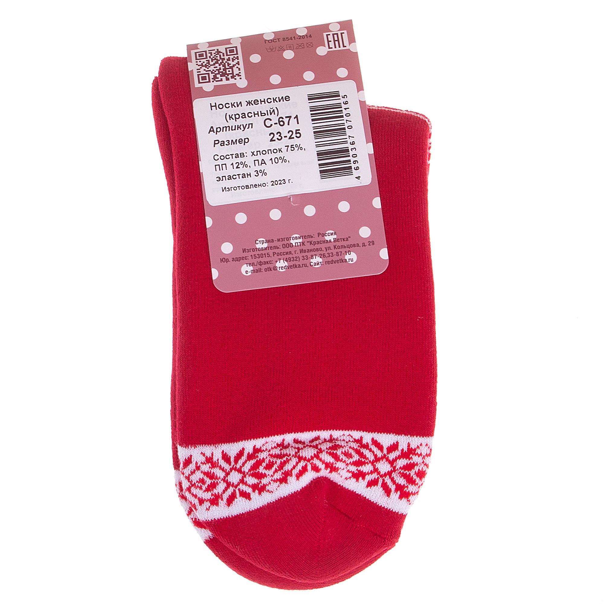 Зимние или межсезонные укороченные женские носки, цвет красный, прикольные, состав: 75% хлопок, 12% полипропилен, 10% полиамид, 3% эластан, фабричный артикул С-671. Производитель «КРАСНАЯ ВЕТКА» Россия под брендом «Красная ветка».