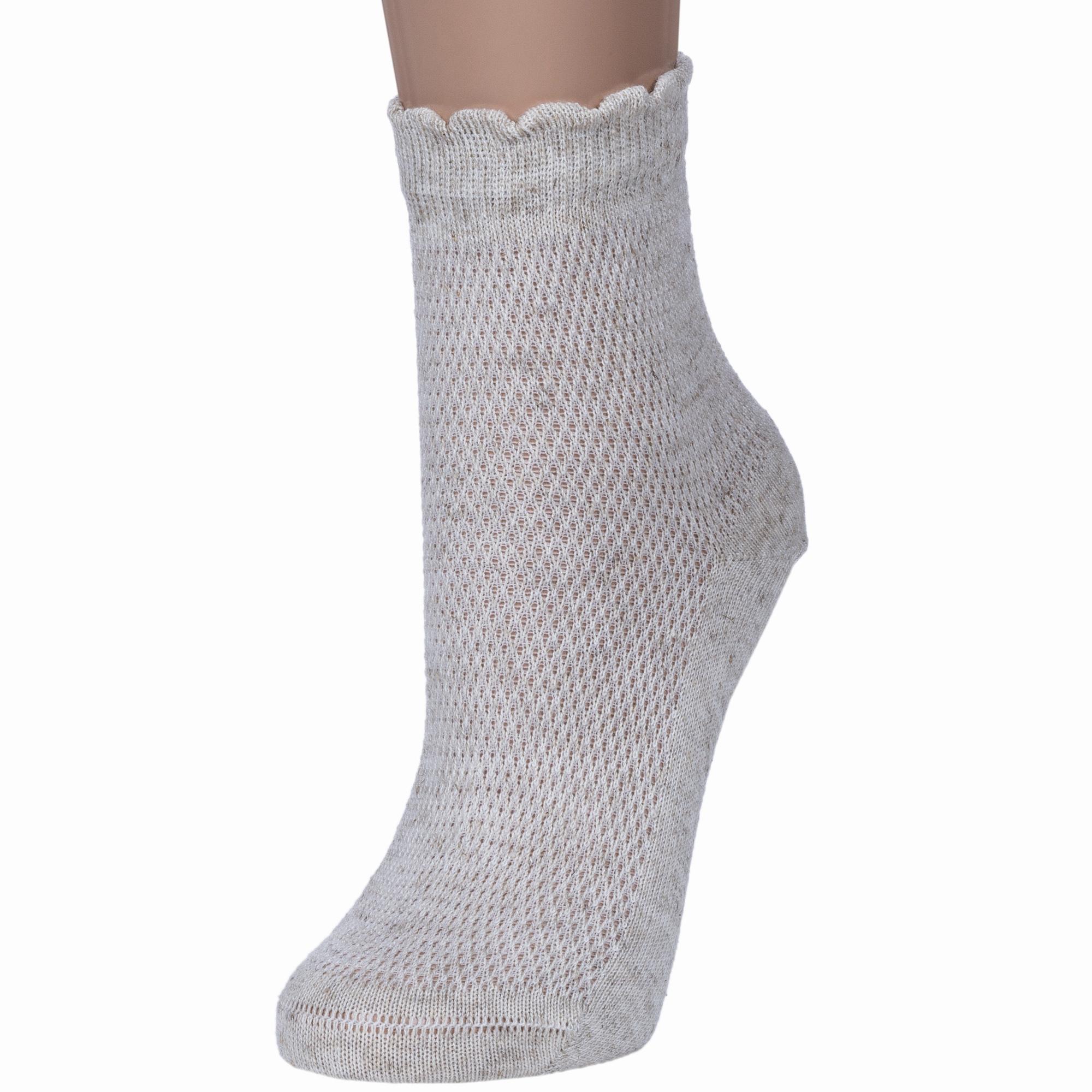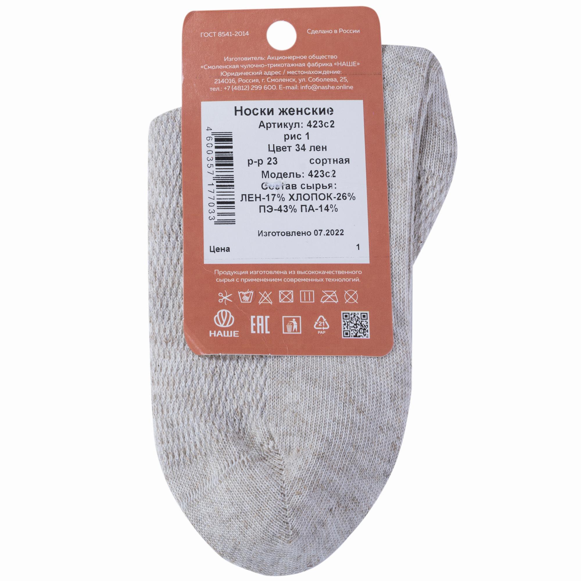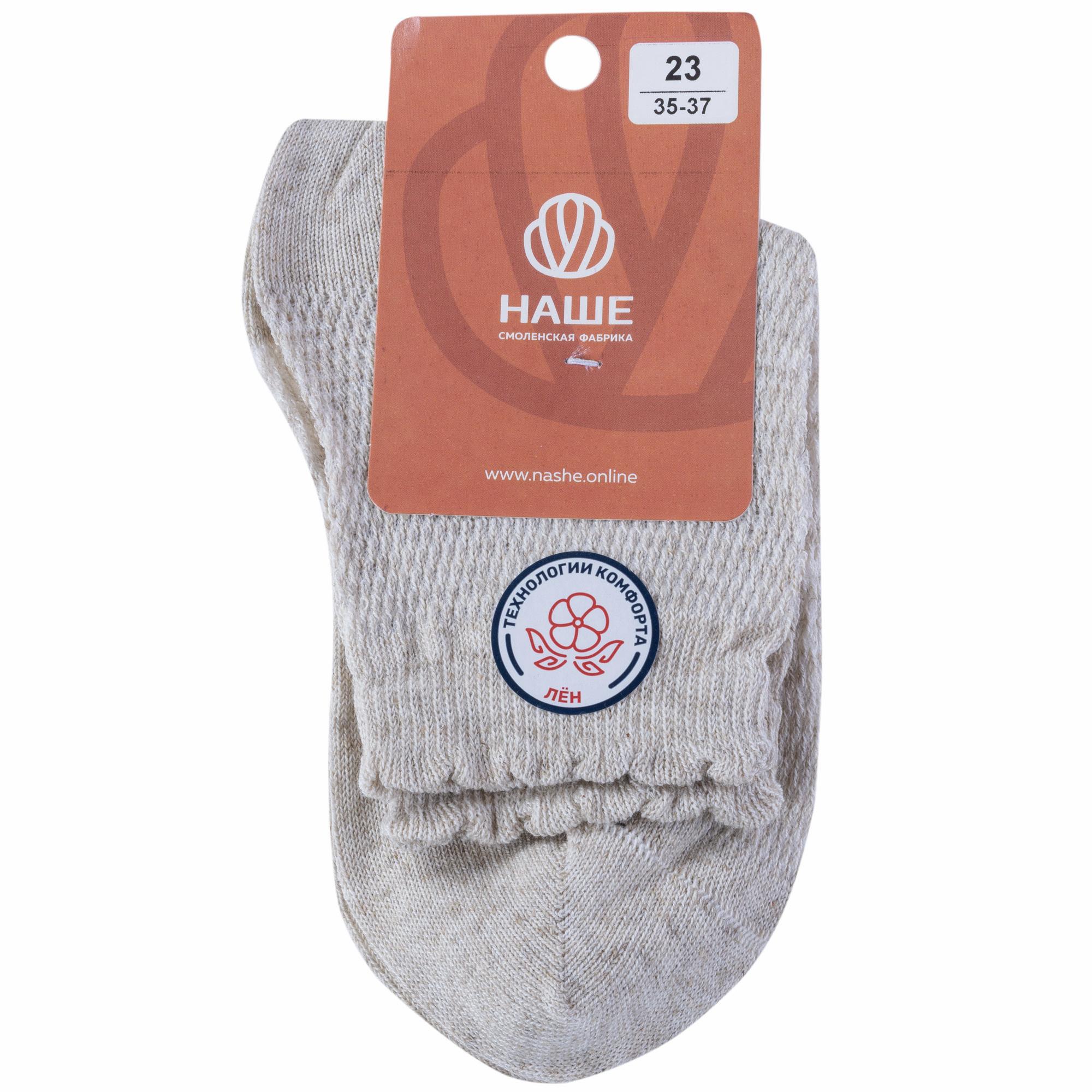 Летние укороченные женские носки, цвет бежевый, в сеточку, классические, шов обычный (не бесшовные), принт (рисунок): однотонный, состав: 43% полиэстер, 26% хлопок, 17% лен, 14% полиамид, арт. 423С2. Производитель «Смоленская чулочная фабрика, Россия» под брендом «Наше смоленской чулочной фабрики».