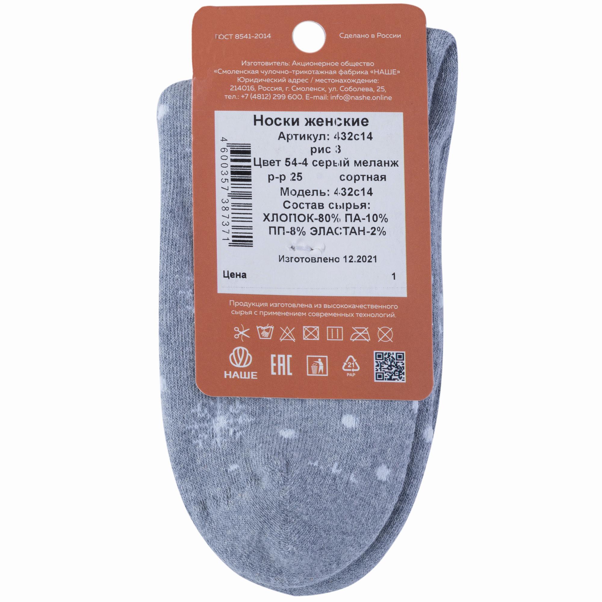 Женские махровые носки "НАШЕ" Смоленской чулочной фабрики 432С14, рис. 3, СЕРЫЕ МЕЛАНЖ №54-4