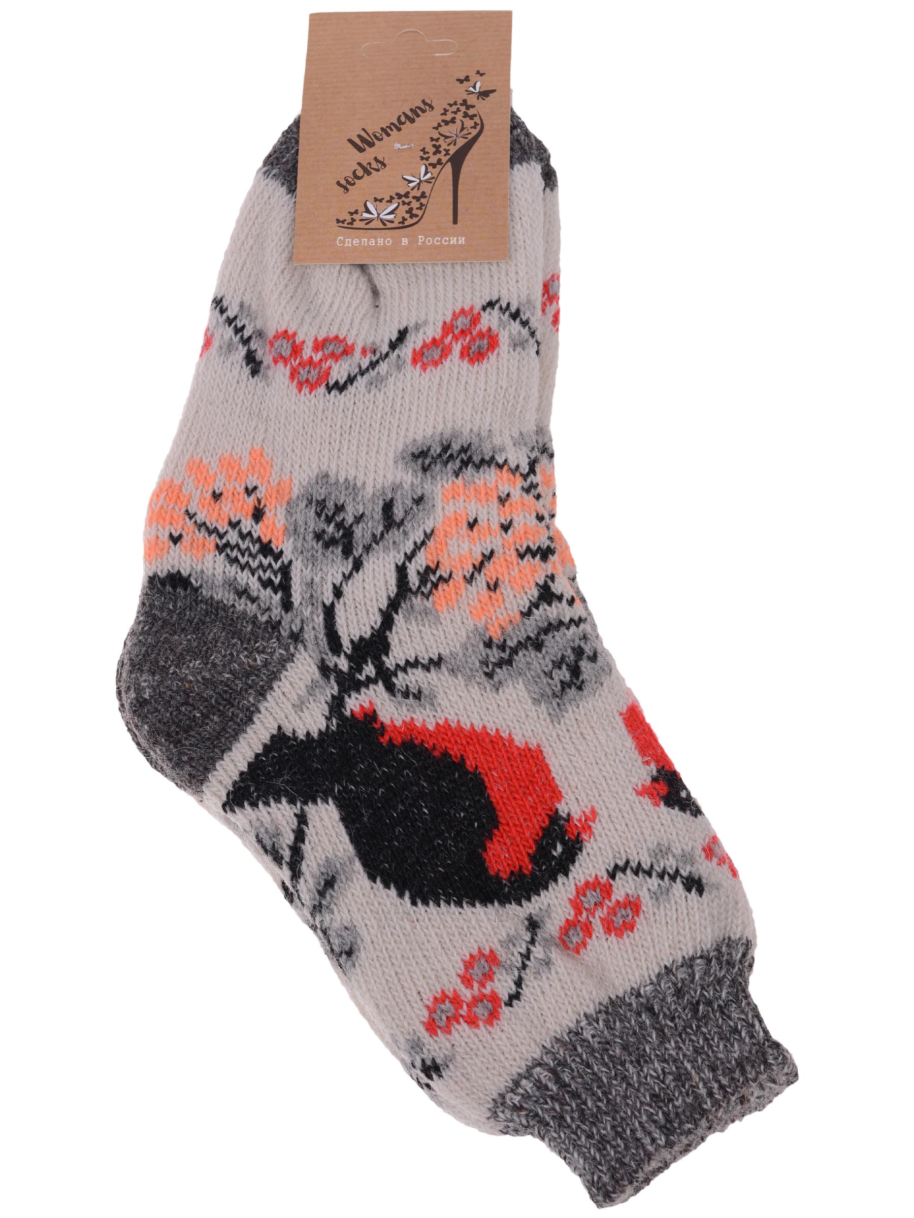 Зимние средней длины женские носки, цвет бежевый, теплые, махровые, шов обычный (не бесшовные), принт (рисунок): животные, состав: 95% шерсть, 5% акрил, арт. ДМ-75. Производитель «ООО Альтаир, г. Орск, Оренбургская обл, Россия» под брендом «Альтаир».