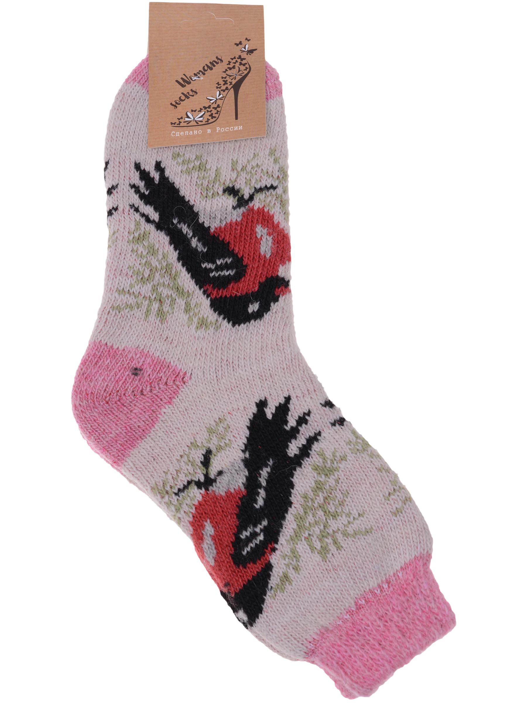 Зимние средней длины женские носки, цвет бежевый, теплые, махровые, шов обычный (не бесшовные), принт (рисунок): животные, состав: 95% шерсть, 5% акрил, арт. ДМ-75. Производитель «ООО Альтаир, г. Орск, Оренбургская обл, Россия» под брендом «Альтаир».
