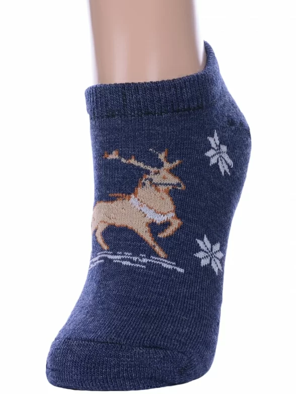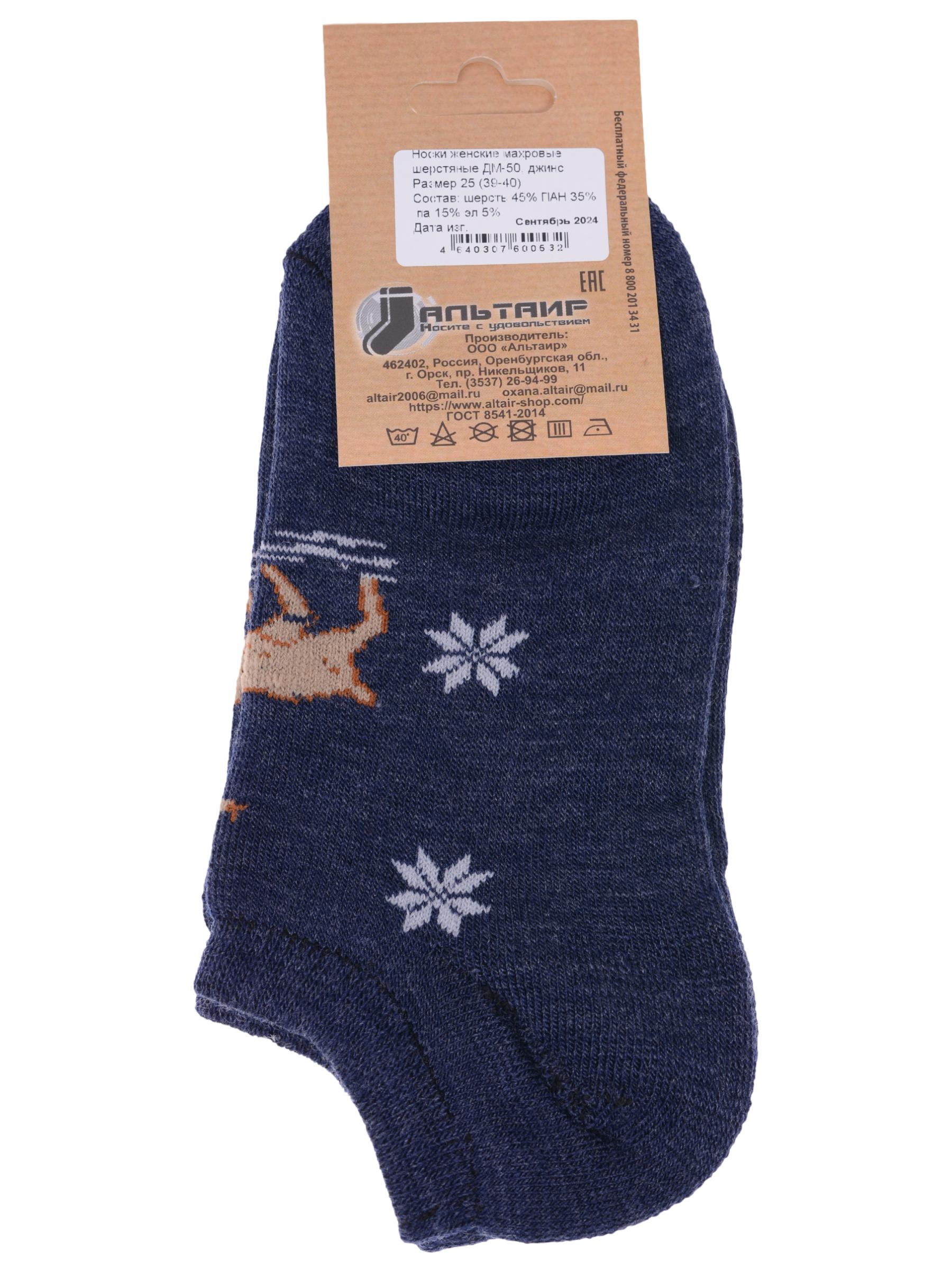 Зимние короткие женские носки, цвет джинс, теплые, махровые, шов обычный (не бесшовные), принт (рисунок): зимний, животные, состав: 45% шерсть, 35% ПАН, 15% полиамид, 5% эластан, арт. ДМ-50. Производитель «ООО Альтаир, г. Орск, Оренбургская обл, Россия» под брендом «Альтаир».