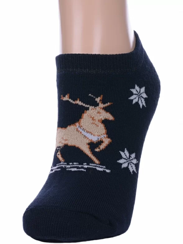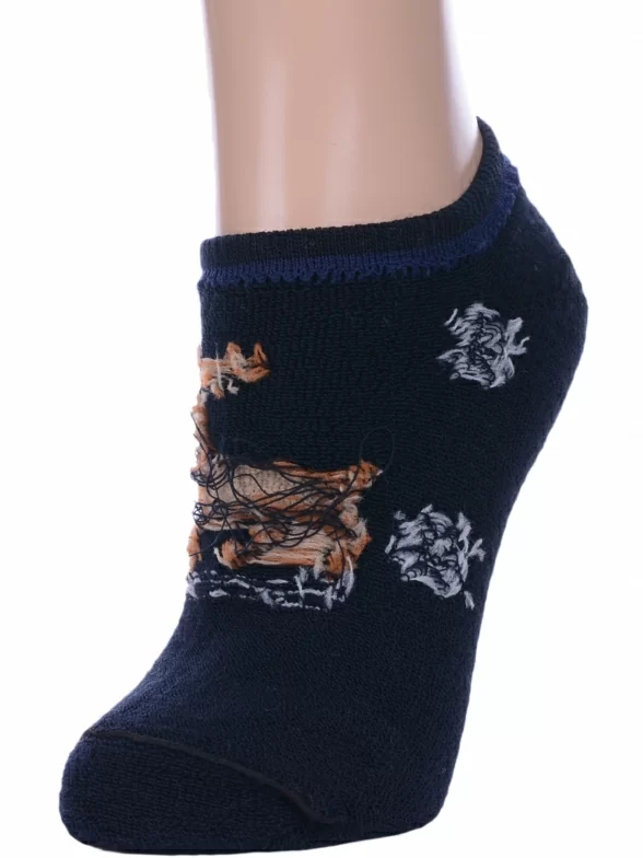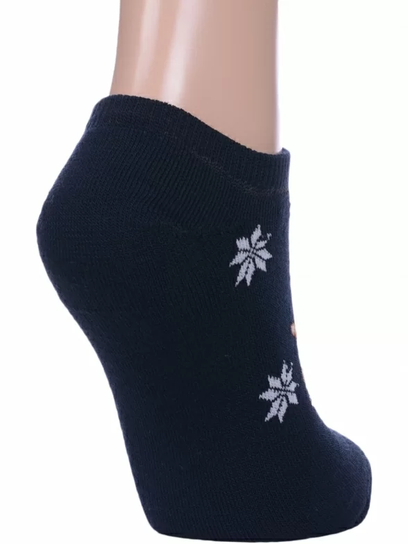 Зимние короткие женские носки, цвет темно-синий, теплые, махровые, шов обычный (не бесшовные), принт (рисунок): зимний, животные, состав: 45% шерсть, 35% ПАН, 15% полиамид, 5% эластан, арт. ДМ-50. Производитель «ООО Альтаир, г. Орск, Оренбургская обл, Россия» под брендом «Альтаир».