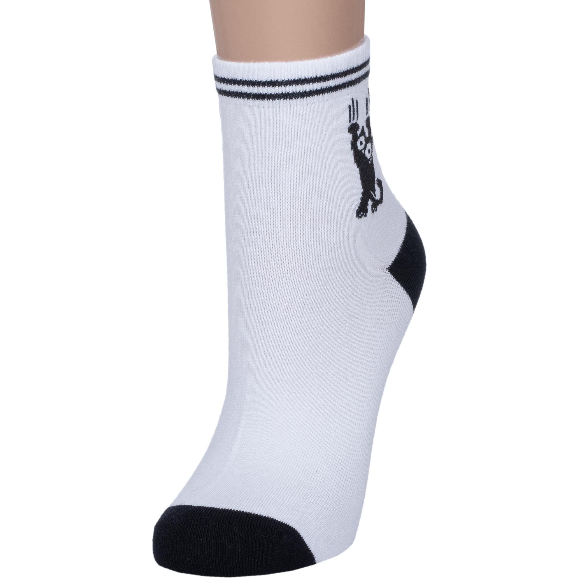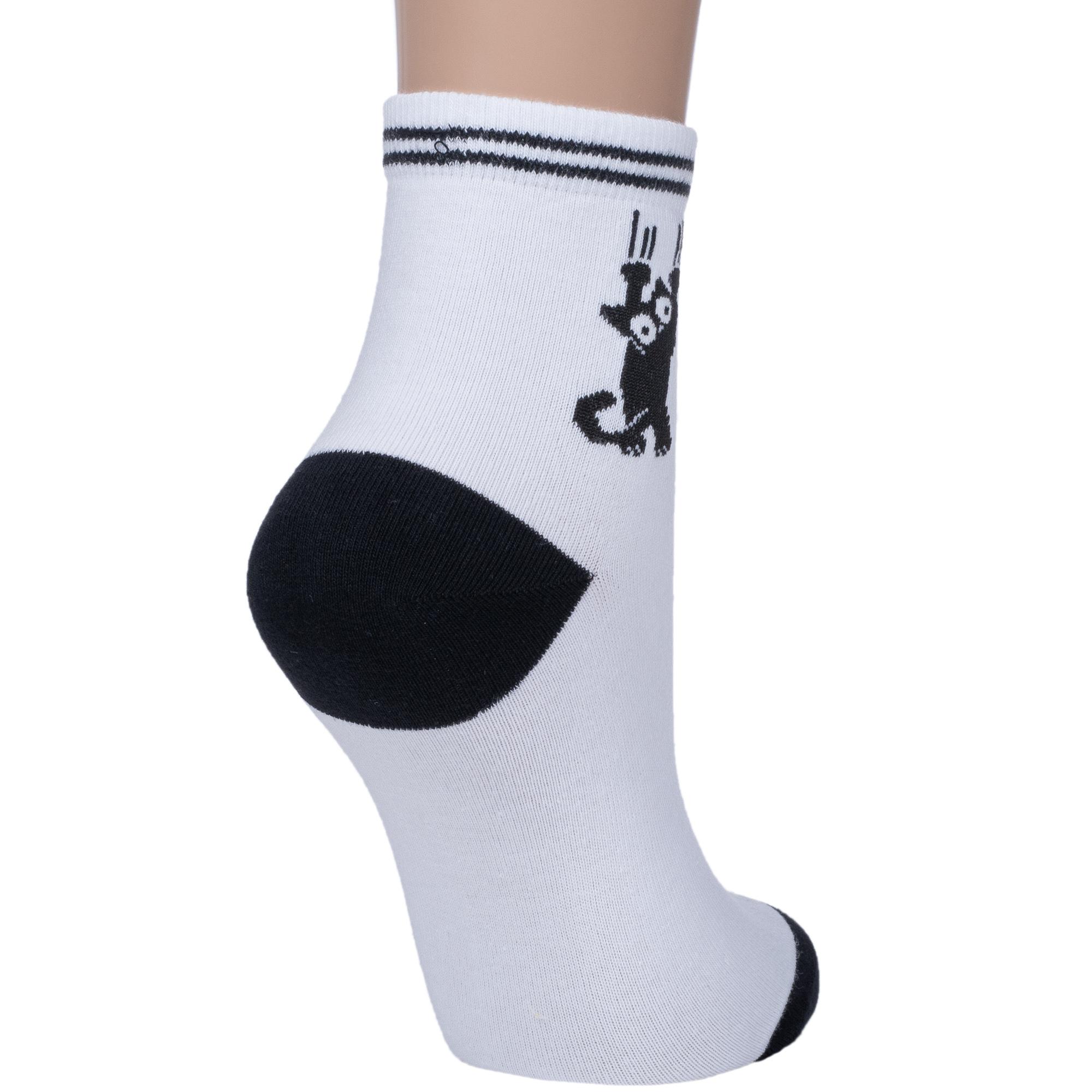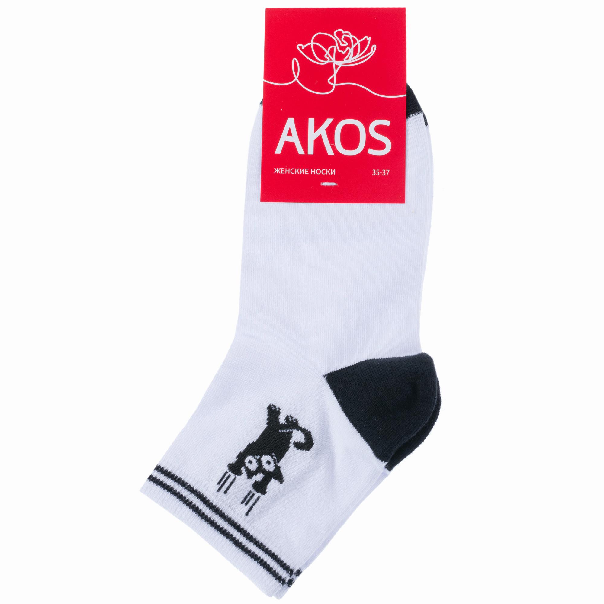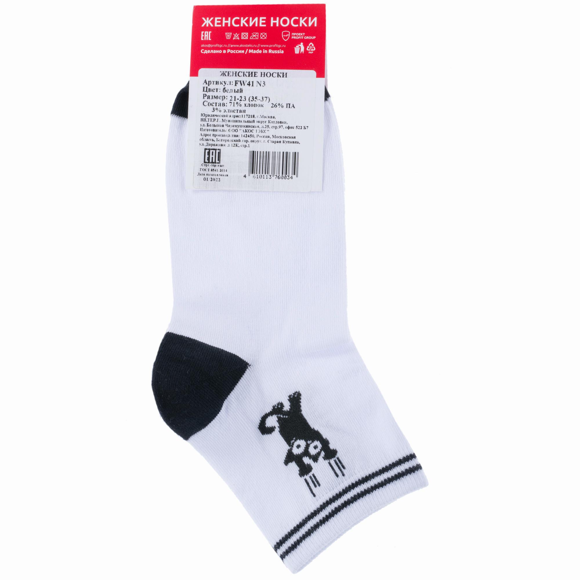 Круглогодичные укороченные женские носки, цвет черный + белый-белый, повседневные, шов кеттельный (бесшовная технология), принт (рисунок): с узором, животные, состав: 71% хлопок, 26% полиамид, 3% эластан, арт. FW41N3. Производитель «ООО «АКОС ТЭКС», Московская область, Россия» под брендом «Akos».
