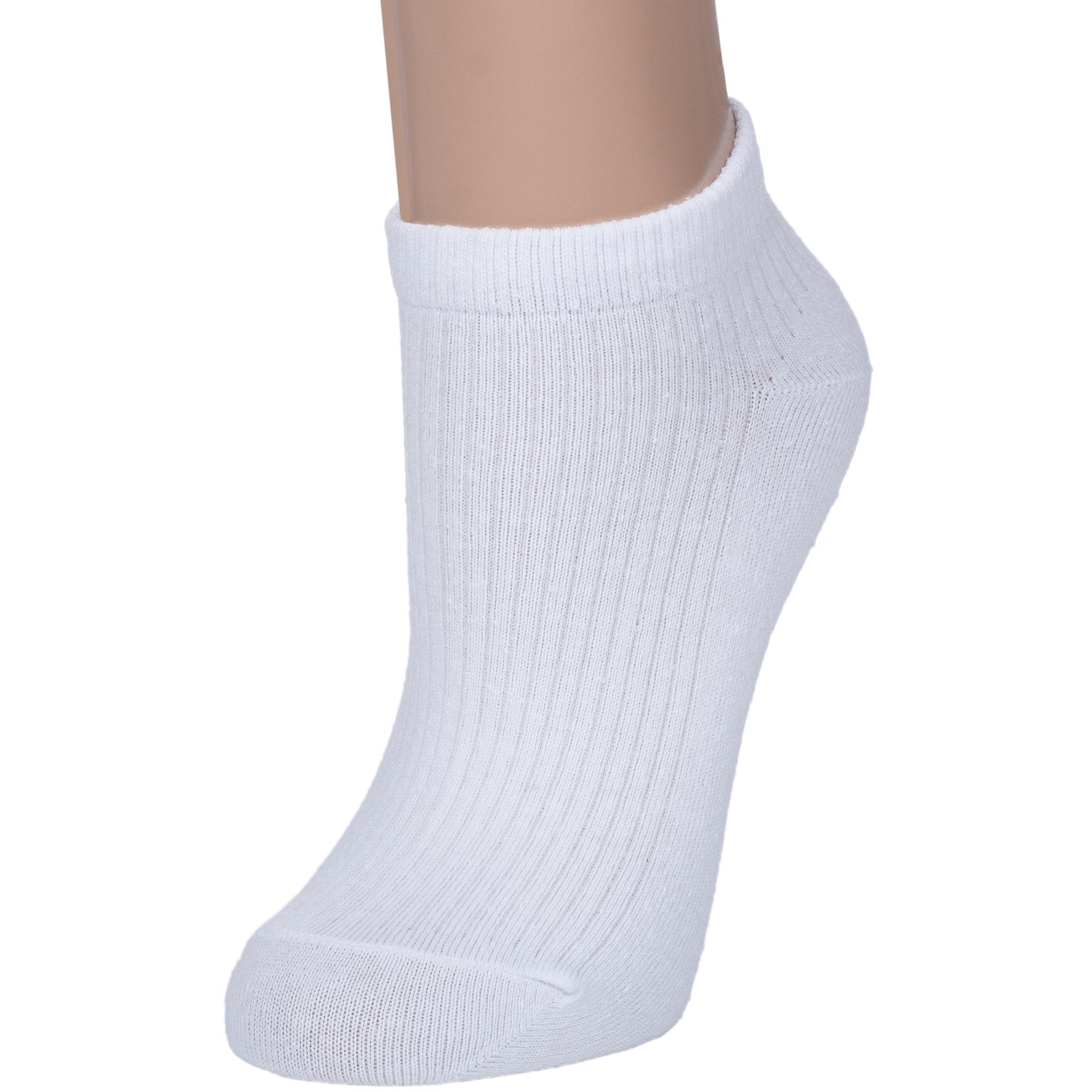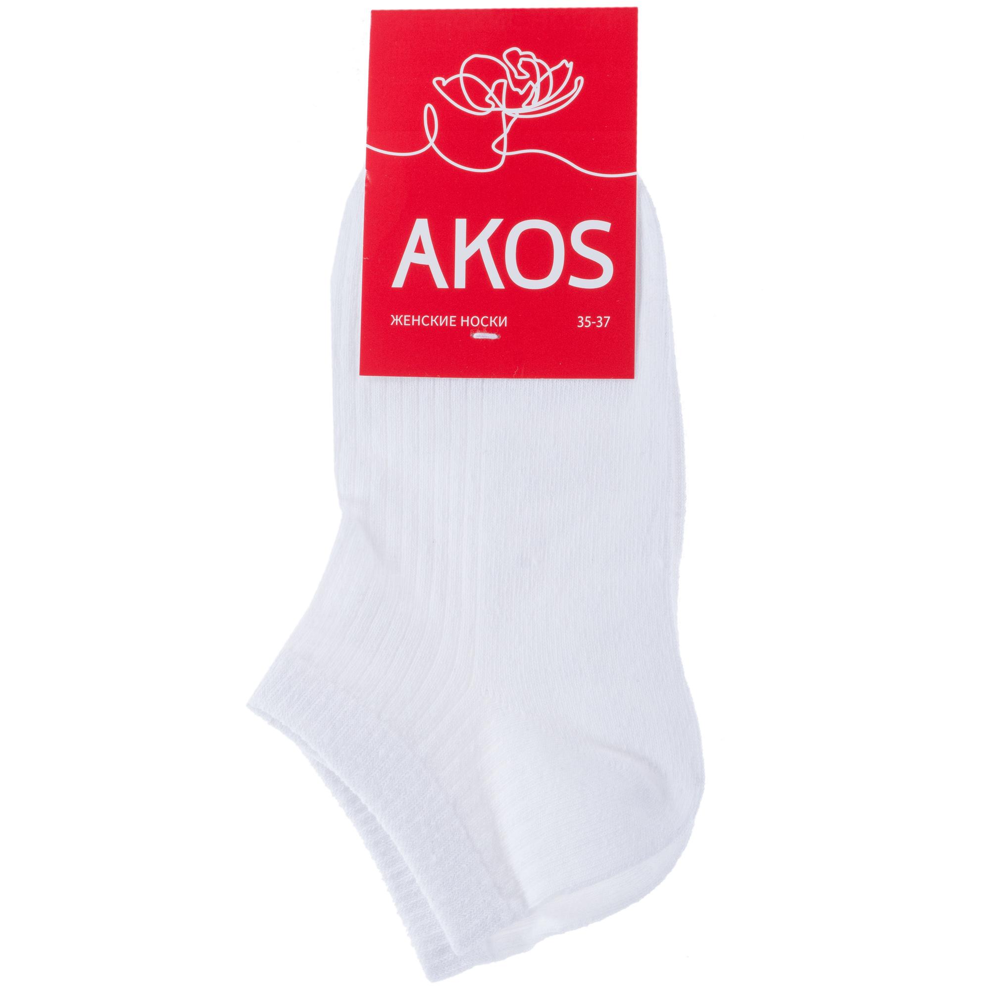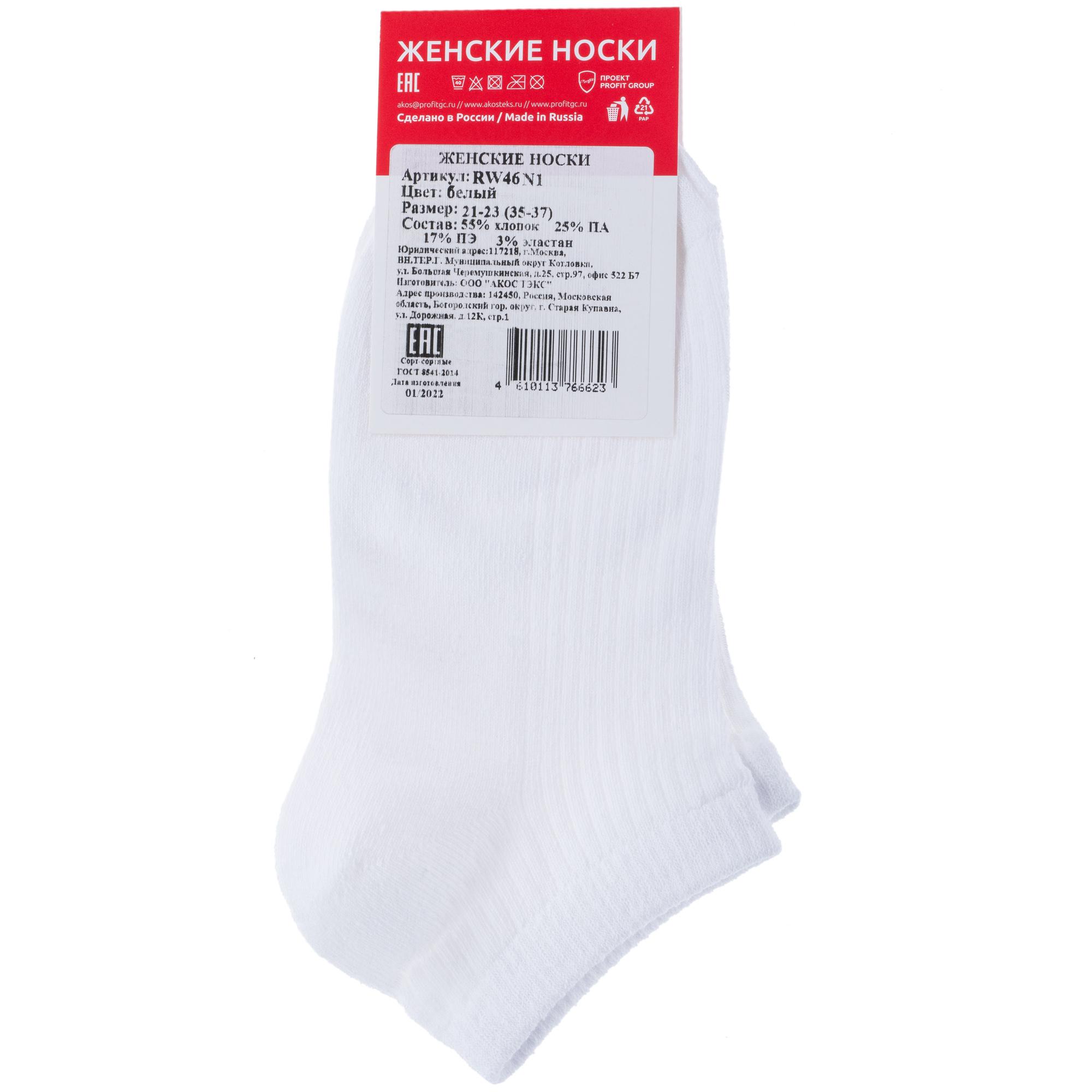 Круглогодичные короткие женские носки, цвет белый, спортивные, классические, шов обычный (не бесшовные), принт (рисунок): однотонный, в рубчик, состав: 55% хлопок, 17% полиэстер, 25% полиамид, 3% эластан, арт. RW46N1. Производитель «ООО «АКОС ТЭКС», Московская область, Россия» под брендом «Akos».