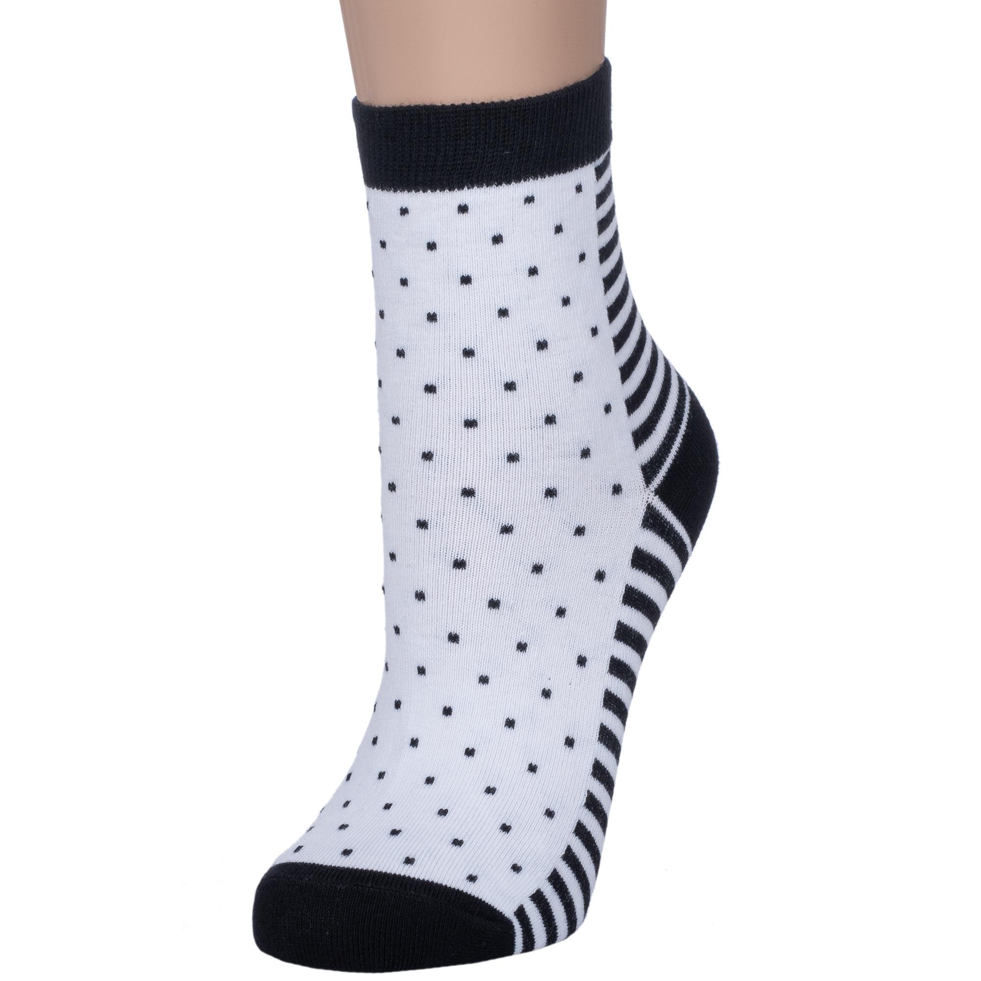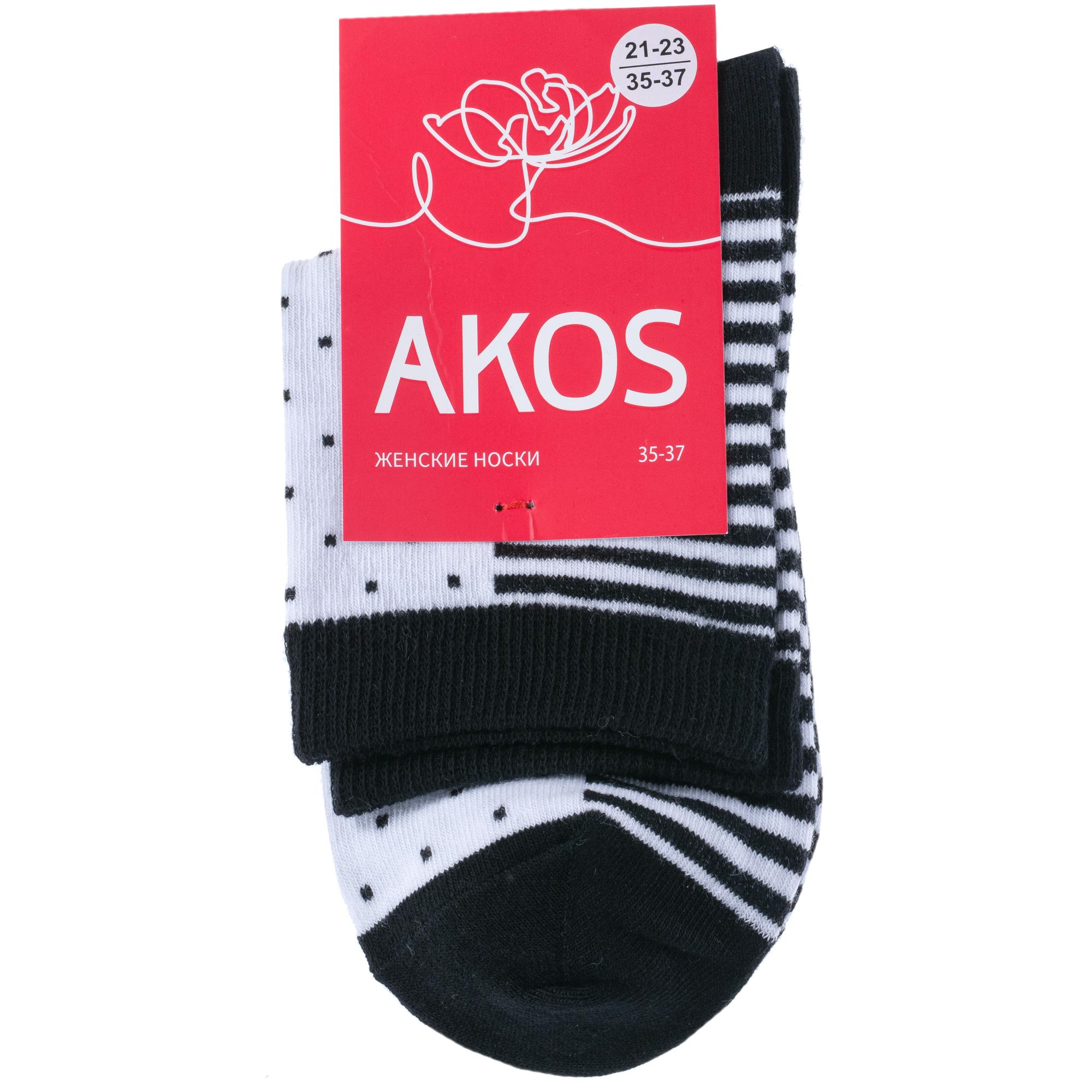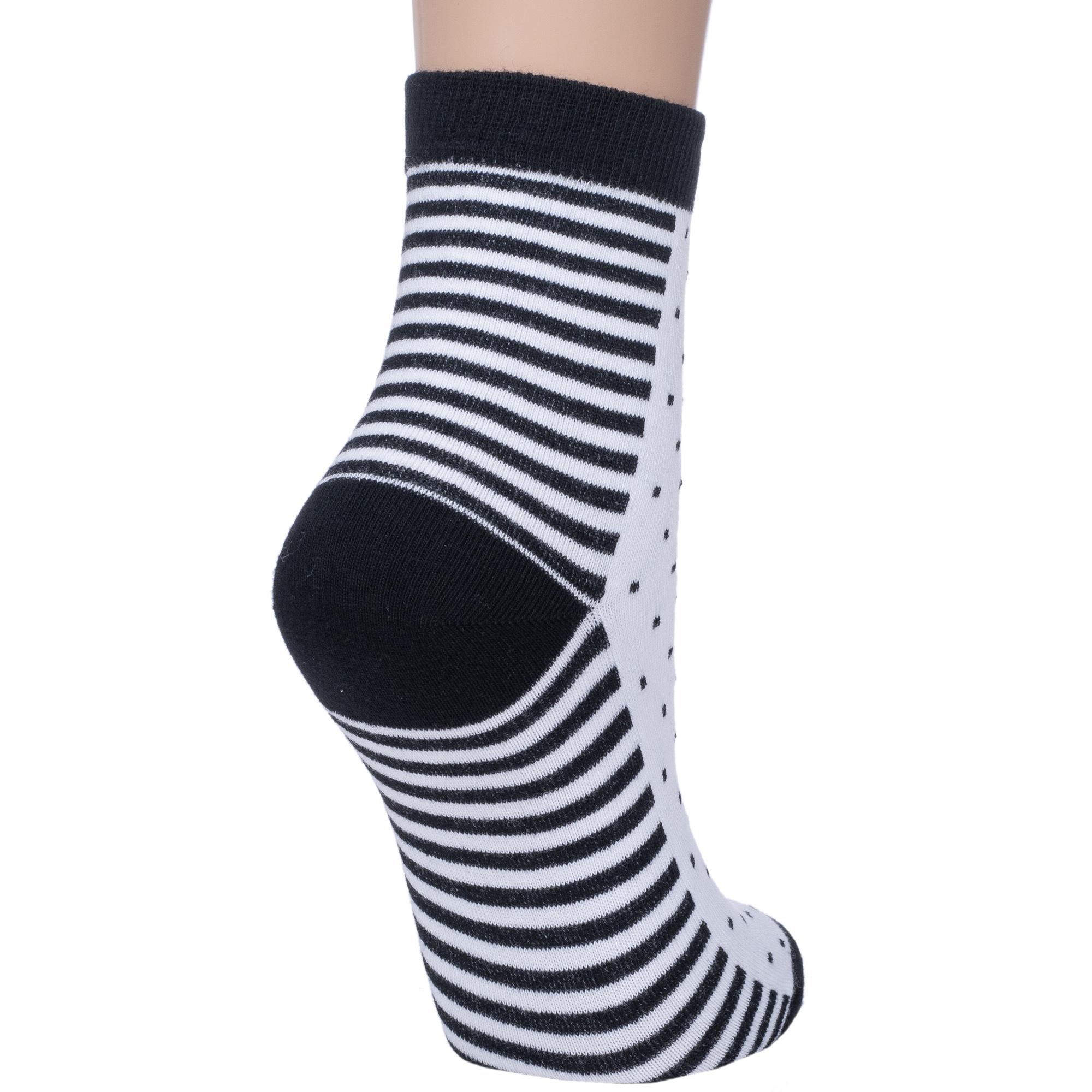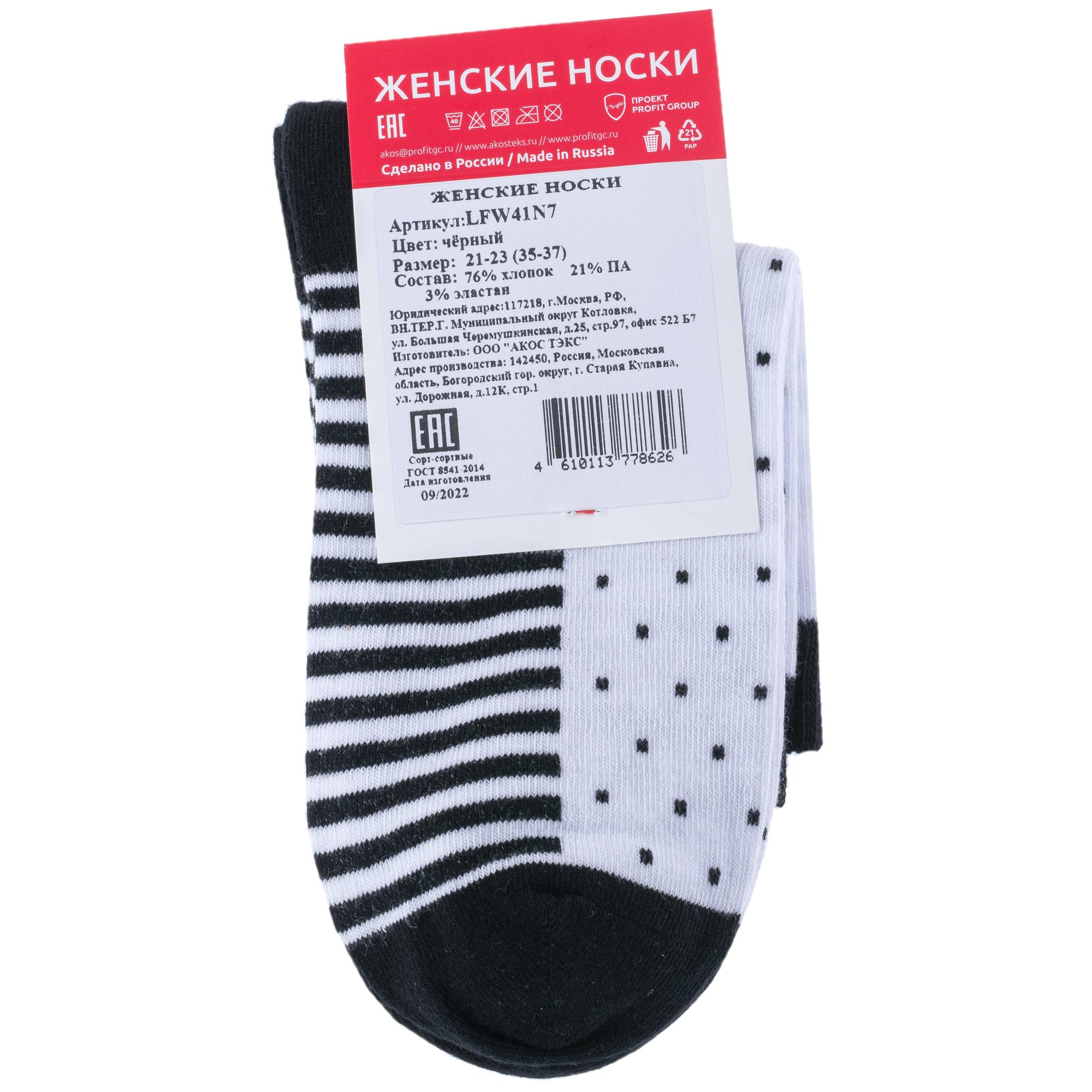 Круглогодичные укороченные женские носки, цвет черный + белый, необычные, повседневные, шов обычный (не бесшовные), принт (рисунок): горох / точка, с узором, полоски, состав: 76% хлопок, 21% полиамид, 3% эластан, арт. LFW41N7. Производитель «ООО «АКОС ТЭКС», Московская область, Россия» под брендом «Akos».