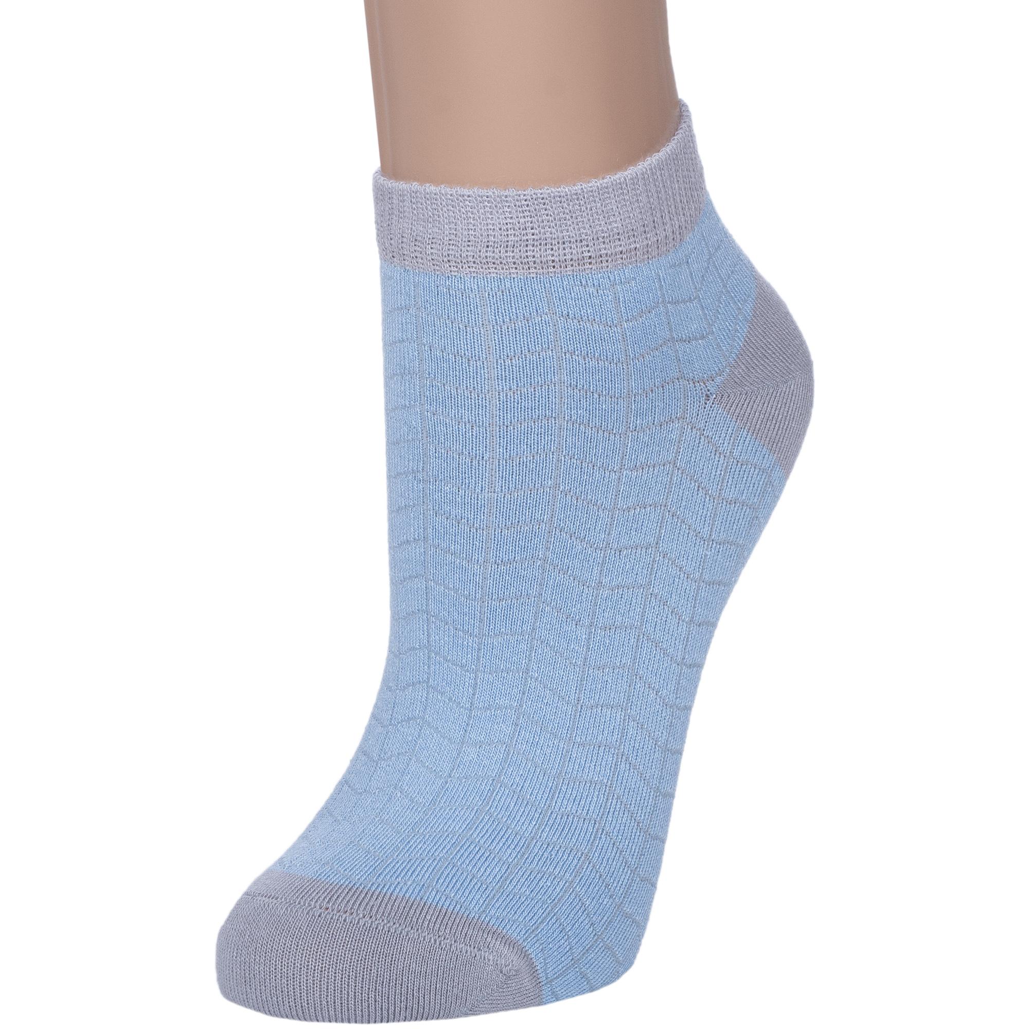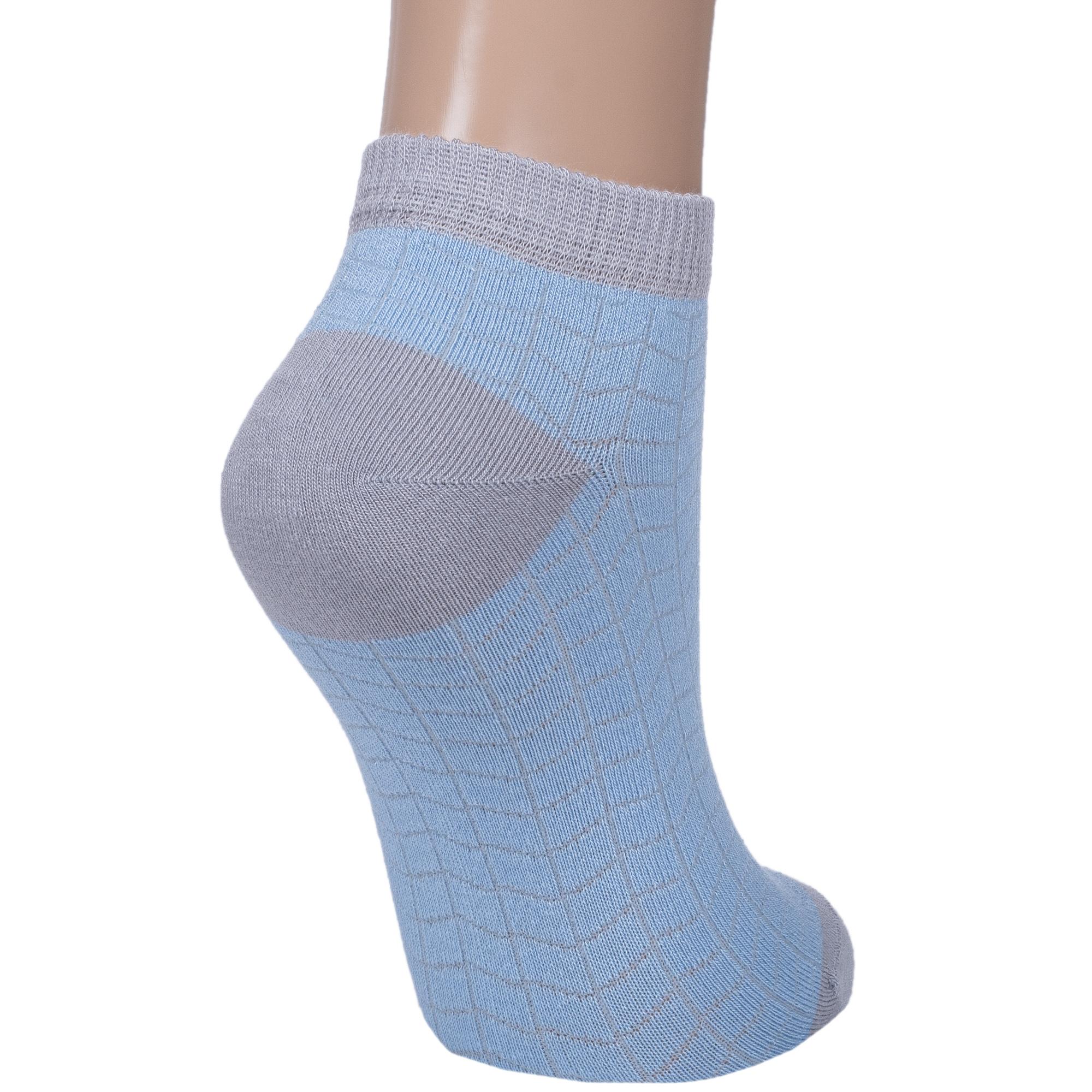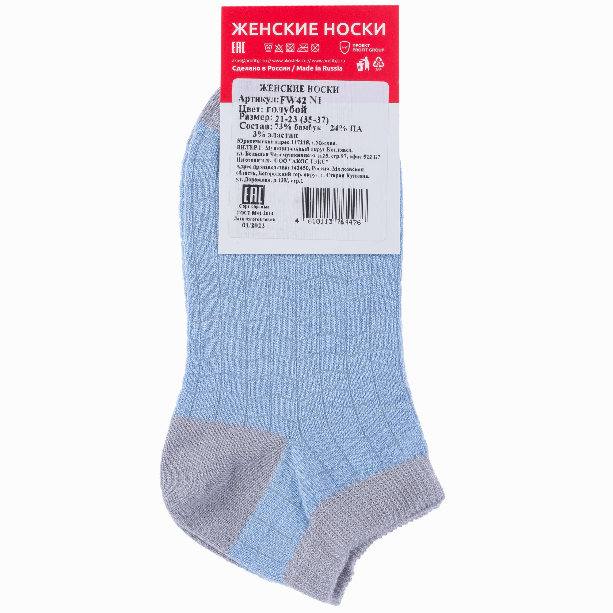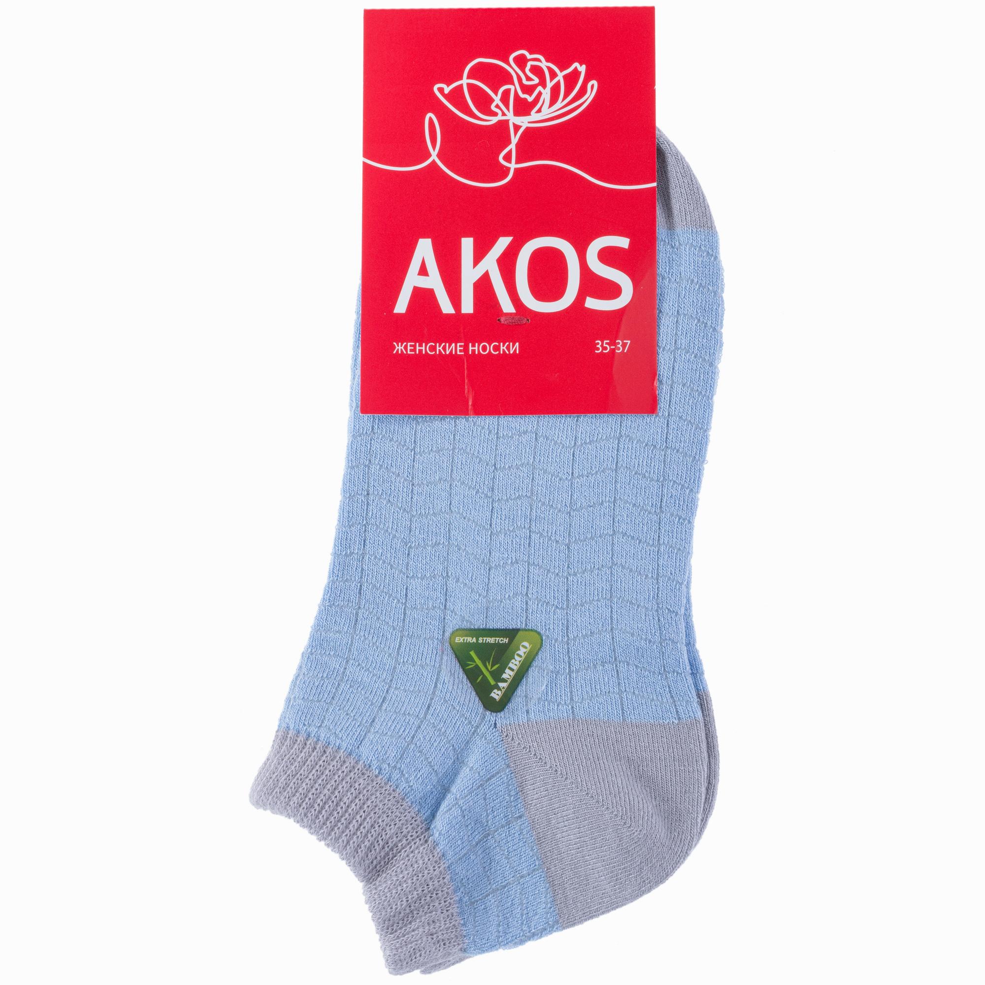Круглогодичные или летние короткие женские носки, цвет голубой, повседневные, шов кеттельный (бесшовная технология), принт (рисунок): клетка, с узором, состав: 73% бамбук, 24% полиамид, 3% эластан, арт. FW42N1. Производитель «ООО «АКОС ТЭКС», Московская область, Россия» под брендом «Akos».