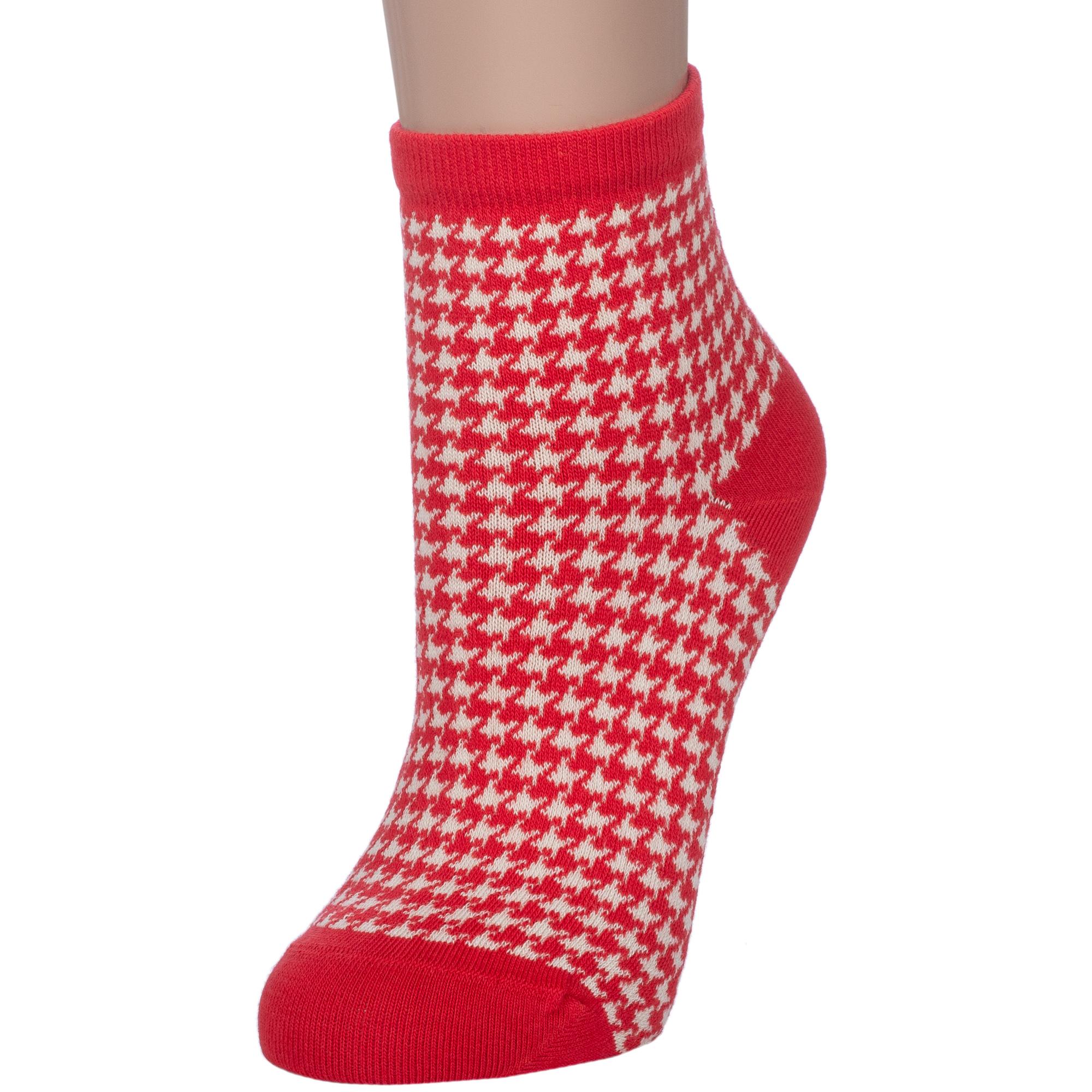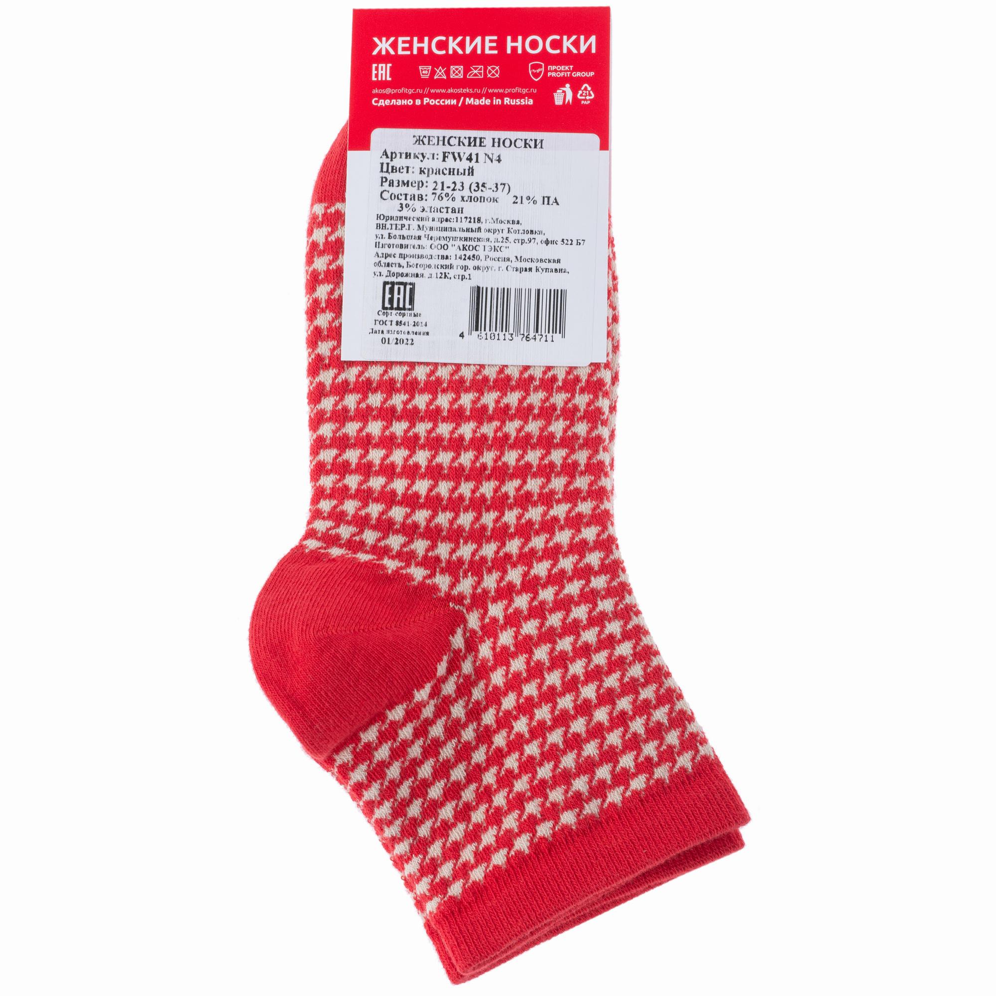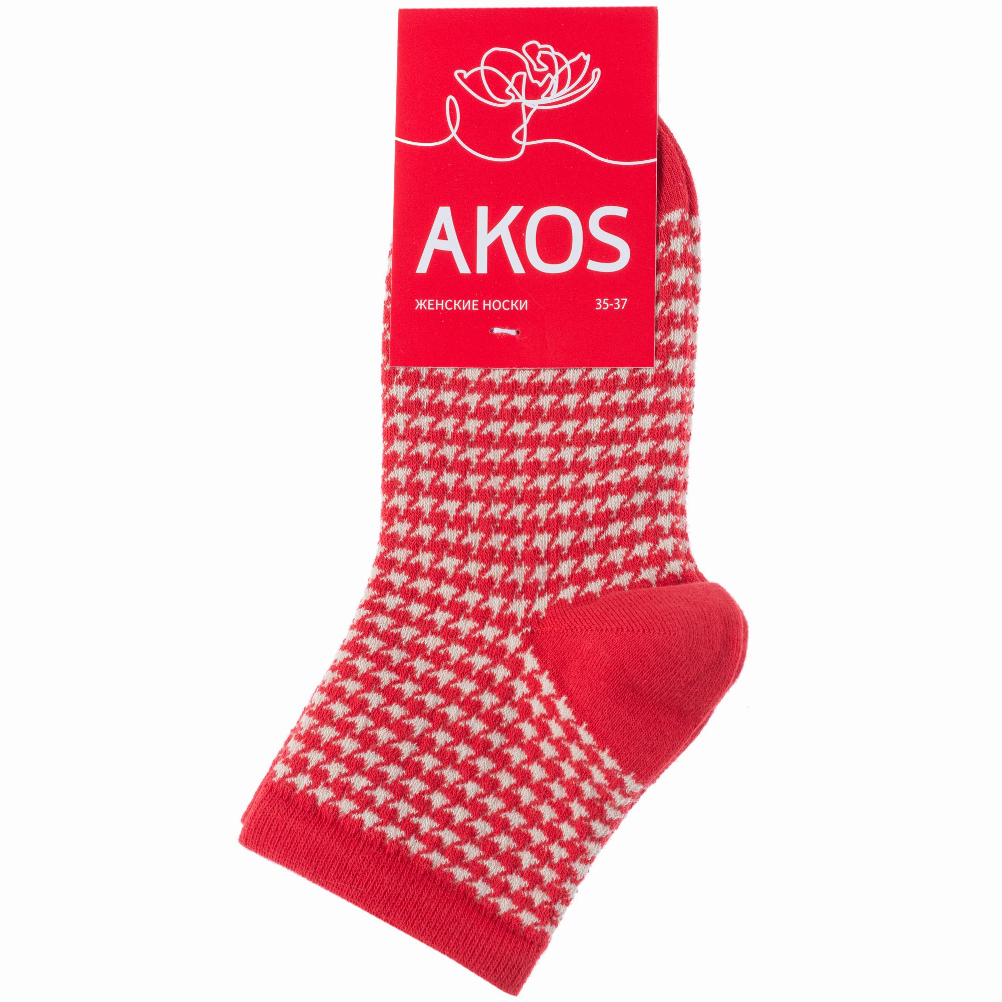 Круглогодичные средней длины женские носки, цвет красный, классические, повседневные, шов кеттельный (бесшовная технология), принт (рисунок): елочка / гусиная лапка, с узором, состав: 76% хлопок, 21% полиамид, 3% эластан, арт. FW41N4. Производитель «ООО «АКОС ТЭКС», Московская область, Россия» под брендом «Akos».