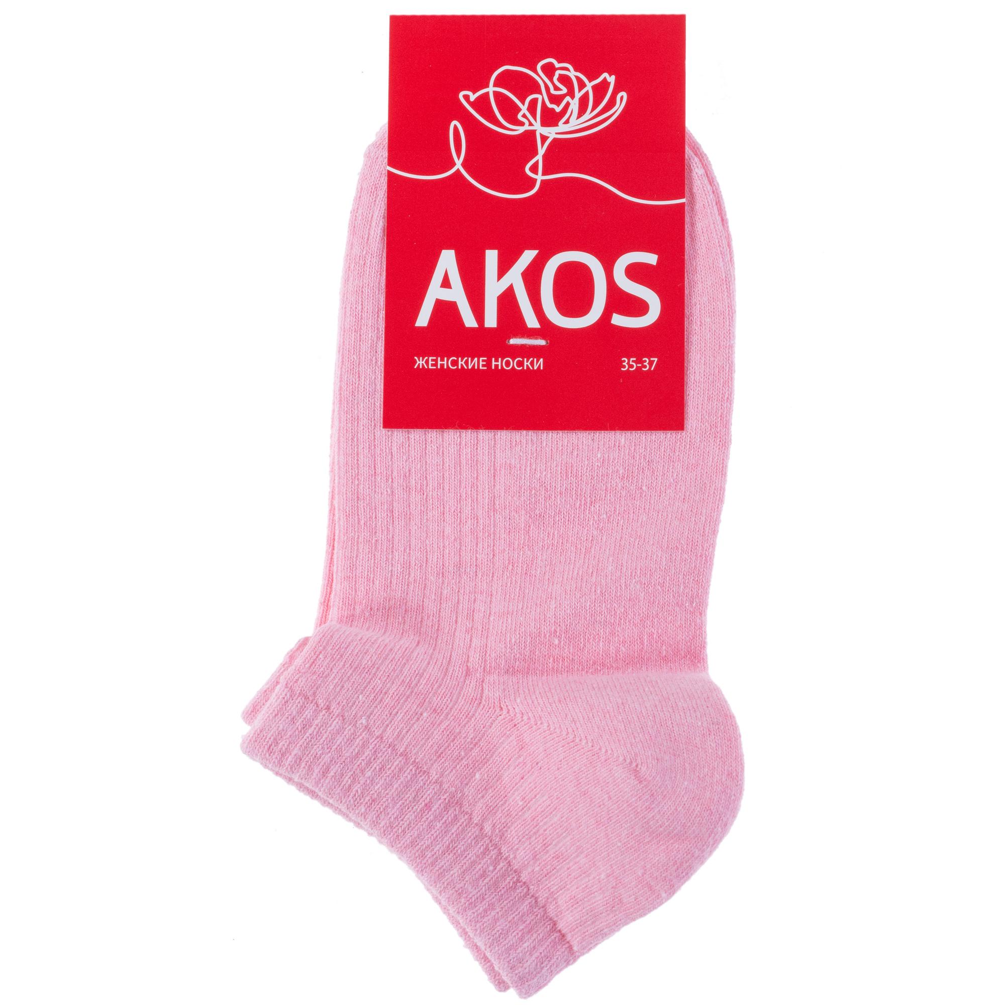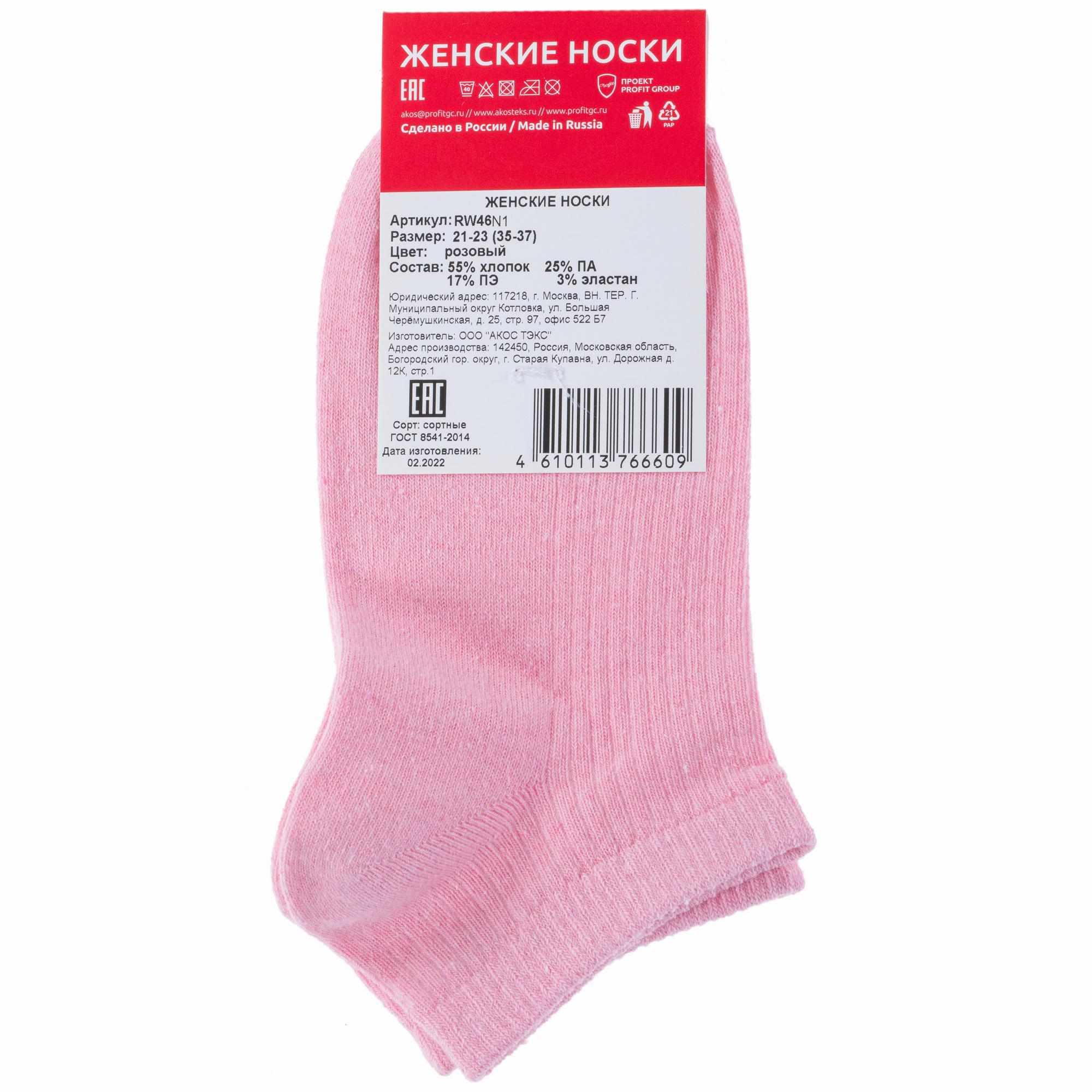 Круглогодичные короткие женские носки, цвет розовый, спортивные, классические, шов обычный (не бесшовные), принт (рисунок): в рубчик, однотонный, состав: 55% хлопок, 17% полиэстер, 25% полиамид, 3% эластан, арт. RW46N1. Производитель «ООО «АКОС ТЭКС», Московская область, Россия» под брендом «Akos».