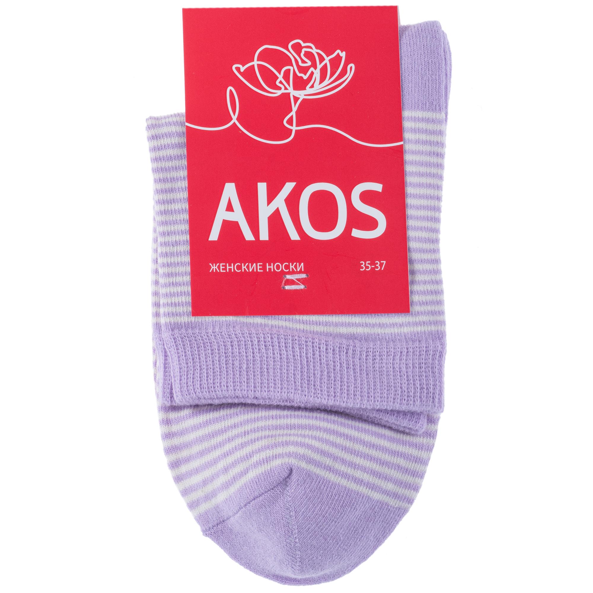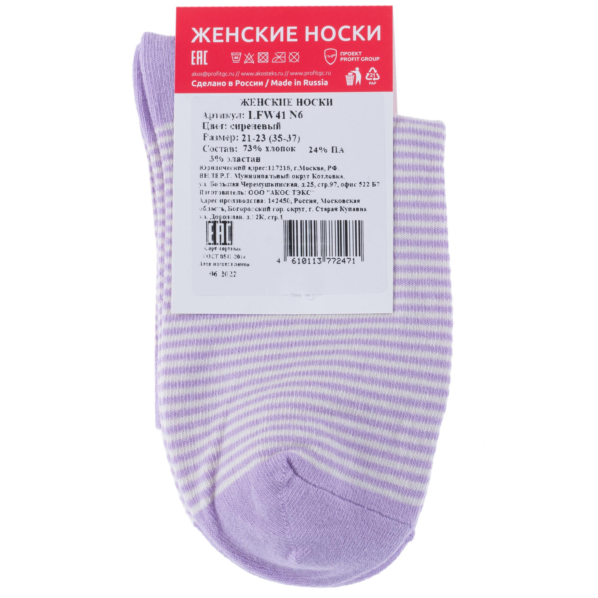 Круглогодичные укороченные женские носки, цвет сиреневый, классические, шов обычный (не бесшовные), принт (рисунок): полоски, с узором, состав: 73% хлопок, 24% полиамид, 3% эластан, арт. LFW41N6. Производитель «ООО «АКОС ТЭКС», Московская область, Россия» под брендом «Akos».