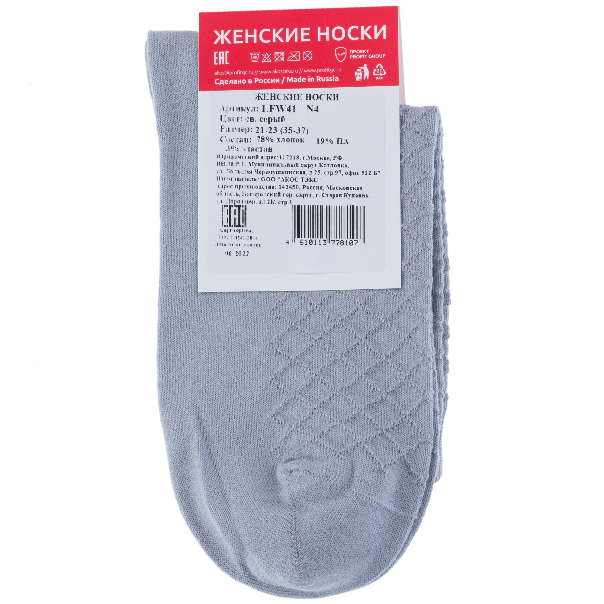 Круглогодичные укороченные женские носки, цвет светло-серый, классические, шов кеттельный (бесшовная технология), принт (рисунок): клетка, с узором, однотонный, состав: 78% хлопок, 19% полиамид, 3% эластан, арт. LFW41N4. Производитель «ООО «АКОС ТЭКС», Московская область, Россия» под брендом «Akos».