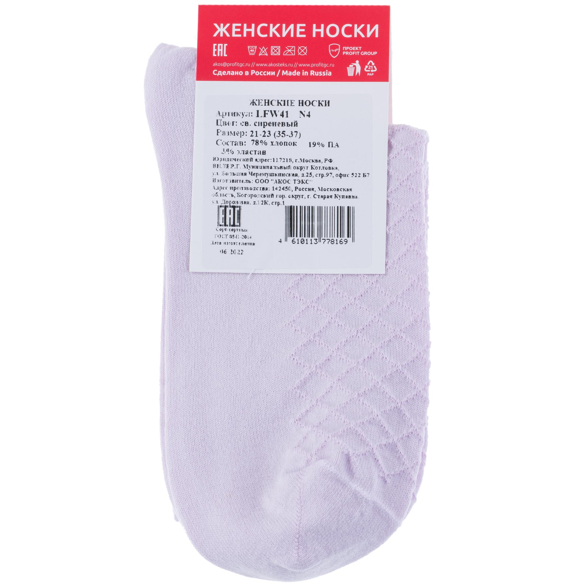Круглогодичные средней длины женские носки, цвет сиреневый, классические, шов кеттельный (бесшовная технология), принт (рисунок): однотонный, с узором, клетка, состав: 78% хлопок, 19% полиамид, 3% эластан, арт. LFW41N4. Производитель «ООО «АКОС ТЭКС», Московская область, Россия» под брендом «Akos».