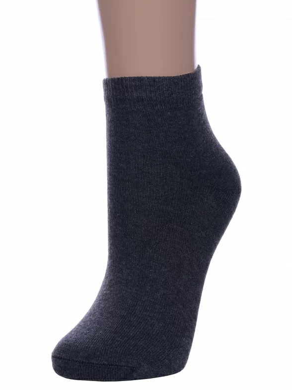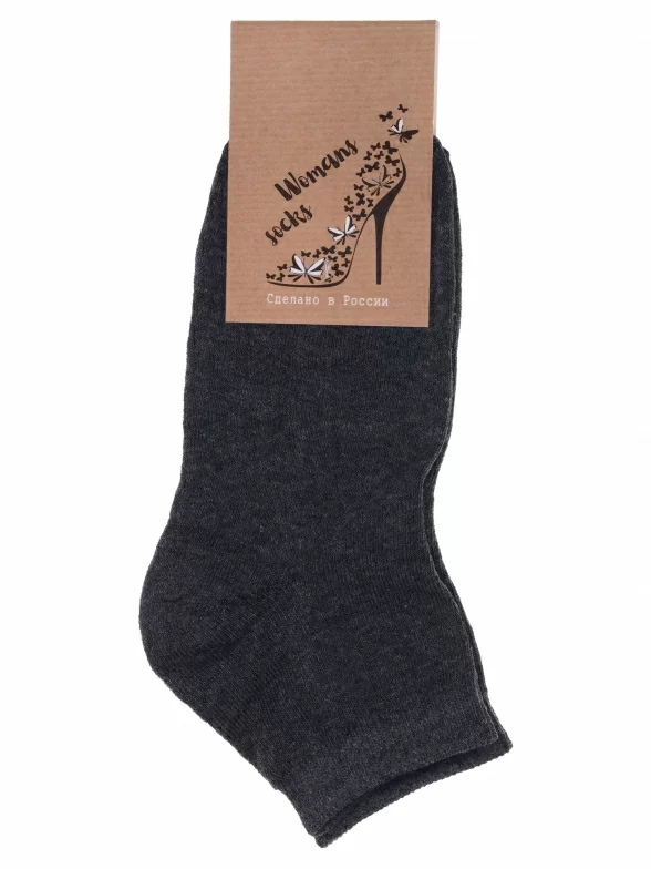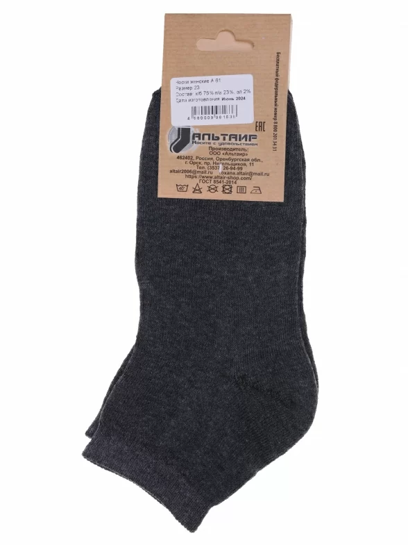 Летние короткие женские носки, цвет темно-серый, классические, шов обычный (не бесшовные), принт (рисунок): без рисунков/узоров, состав: 75% хлопок, 23% полиамид, 2% эластан, арт. А61. Производитель «ООО Альтаир, г. Орск, Оренбургская обл, Россия» под брендом «Альтаир».