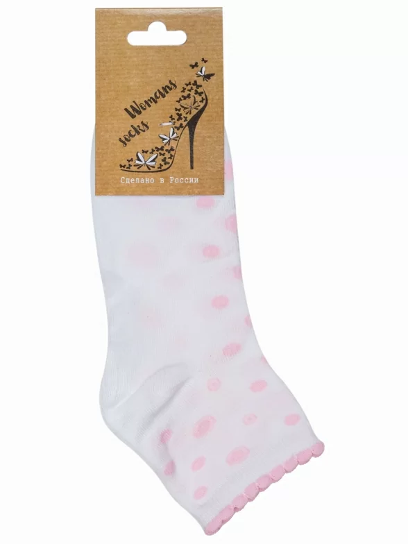 Круглогодичные короткие женские носки, цвет белый, повседневные, шов обычный (не бесшовные), принт (рисунок): мелкий принт, с узором, состав: 97% полиамид, 3% эластан, арт. С211. Производитель «ООО Альтаир, г. Орск, Оренбургская обл, Россия» под брендом «Альтаир».