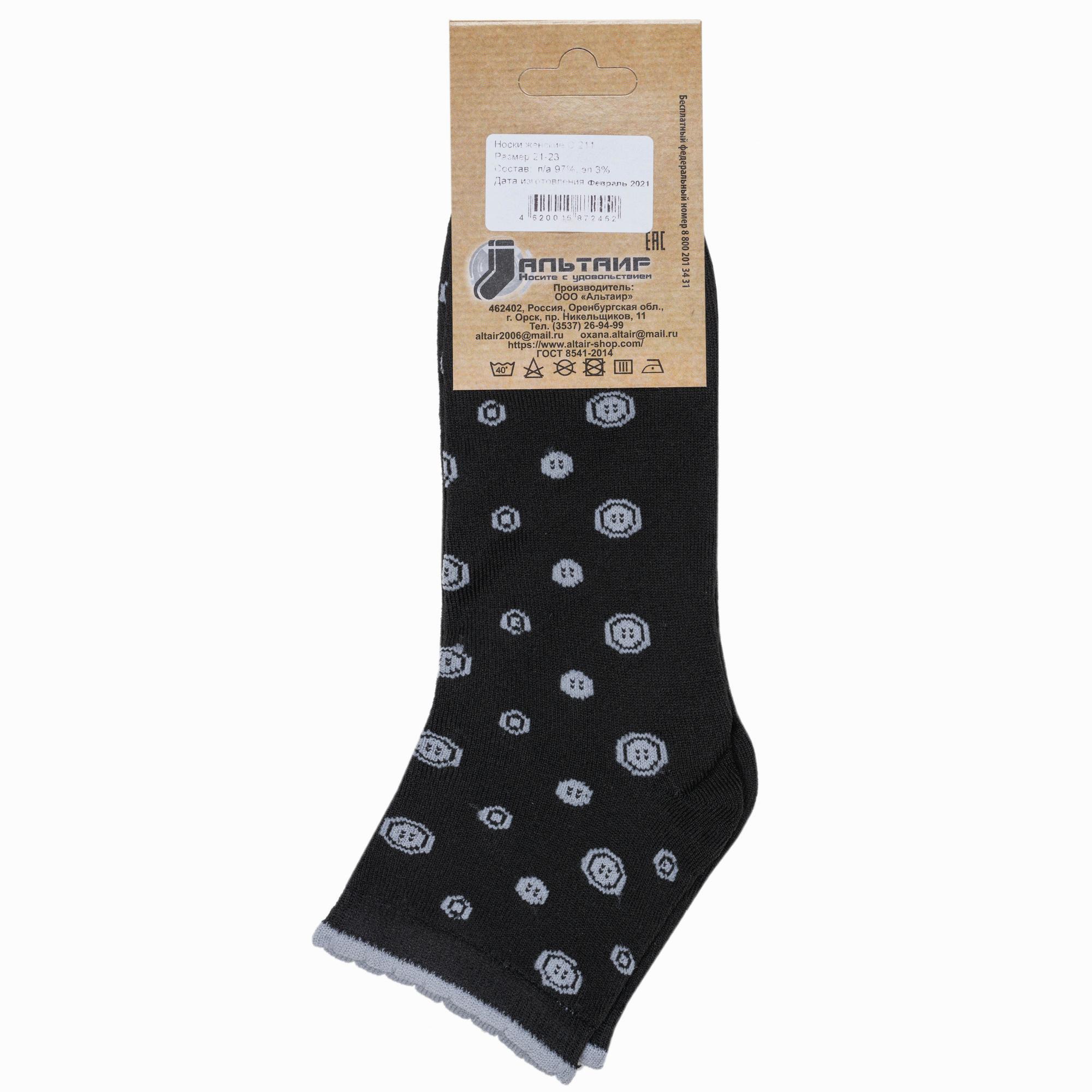Круглогодичные короткие женские носки, цвет черный, повседневные, шов обычный (не бесшовные), принт (рисунок): мелкий принт, с узором, состав: 97% полиамид, 3% эластан, арт. С211. Производитель «ООО Альтаир, г. Орск, Оренбургская обл, Россия» под брендом «Альтаир».