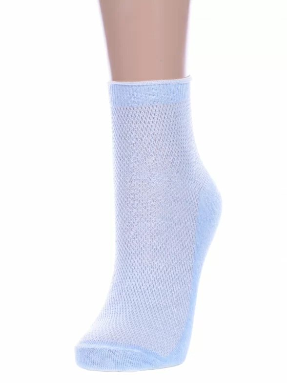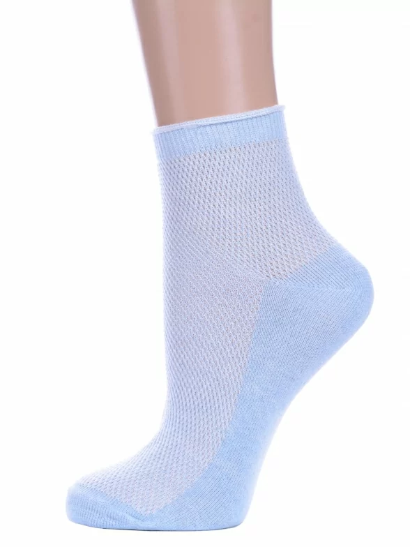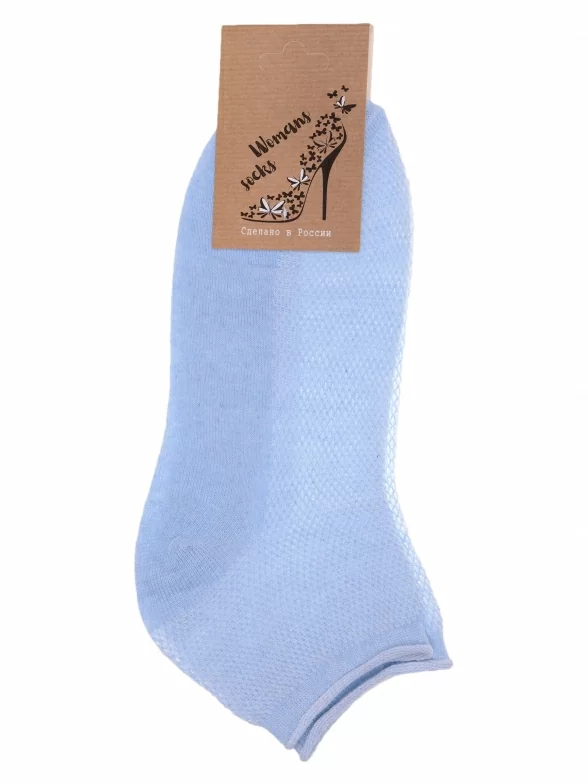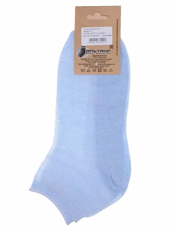 Летние укороченные женские носки, цвет голубой, в сеточку, шов обычный (не бесшовные), принт (рисунок): без рисунков/узоров, состав: 75% хлопок, 25% полиамид, арт. А33. Производитель «ООО Альтаир, г. Орск, Оренбургская обл, Россия» под брендом «Альтаир».