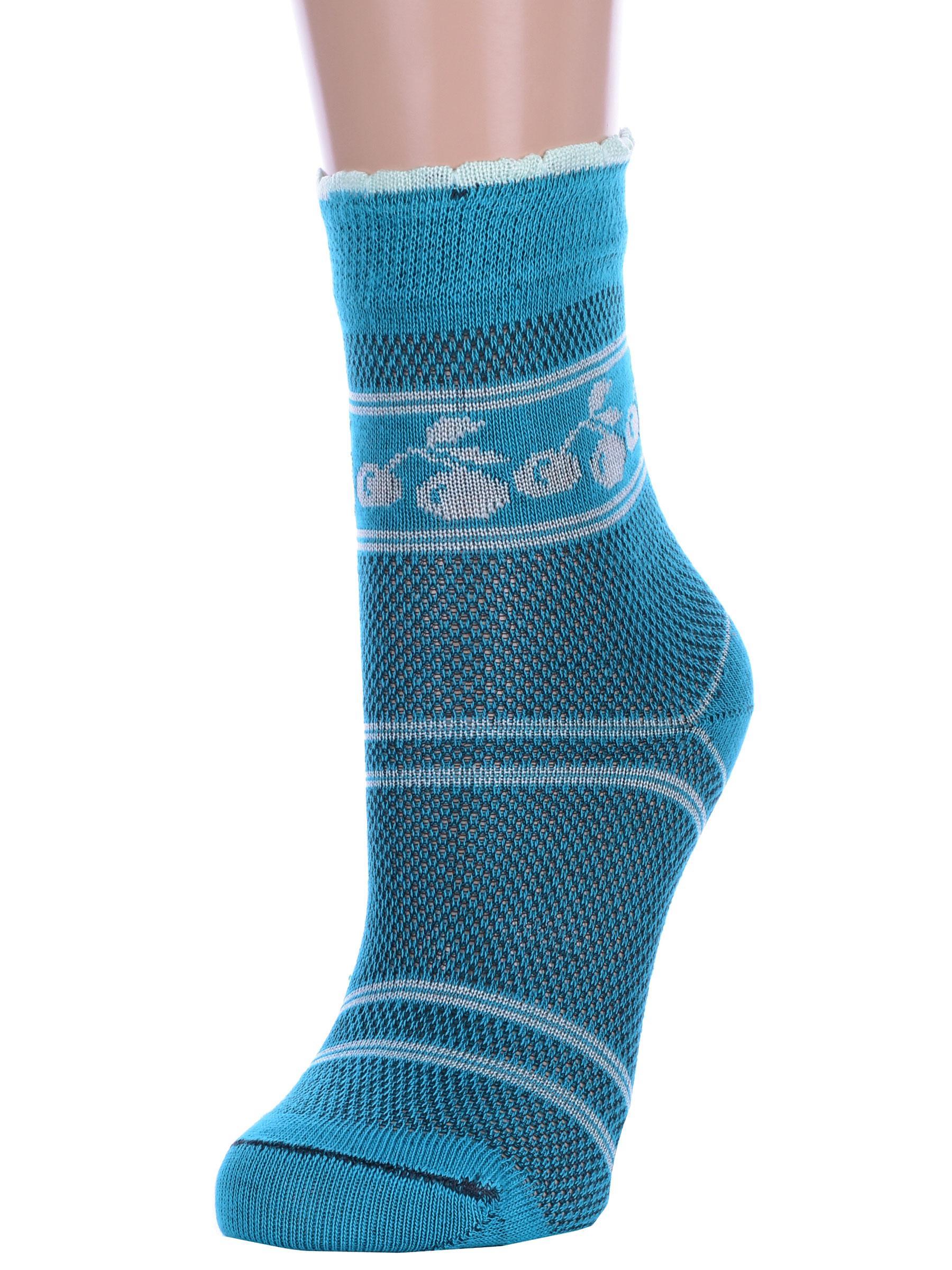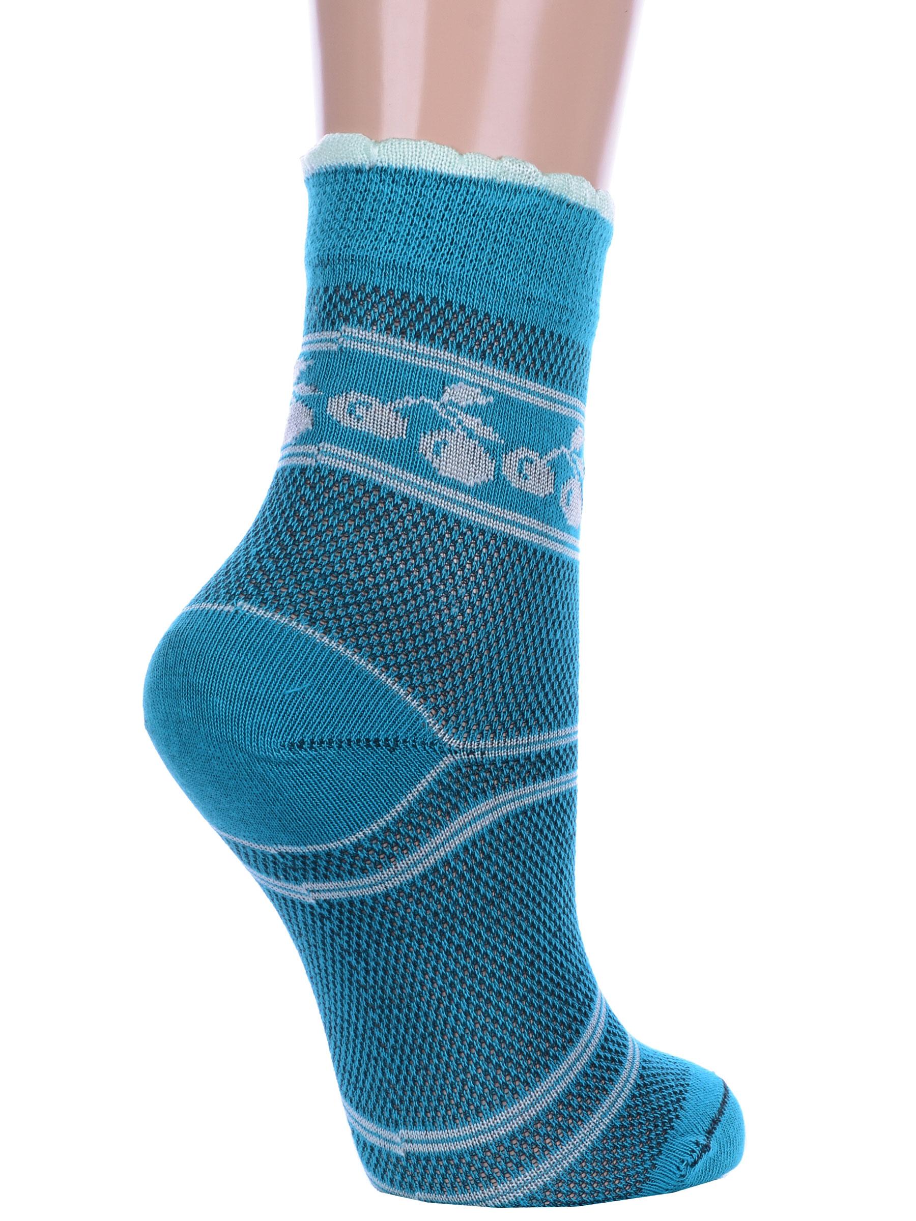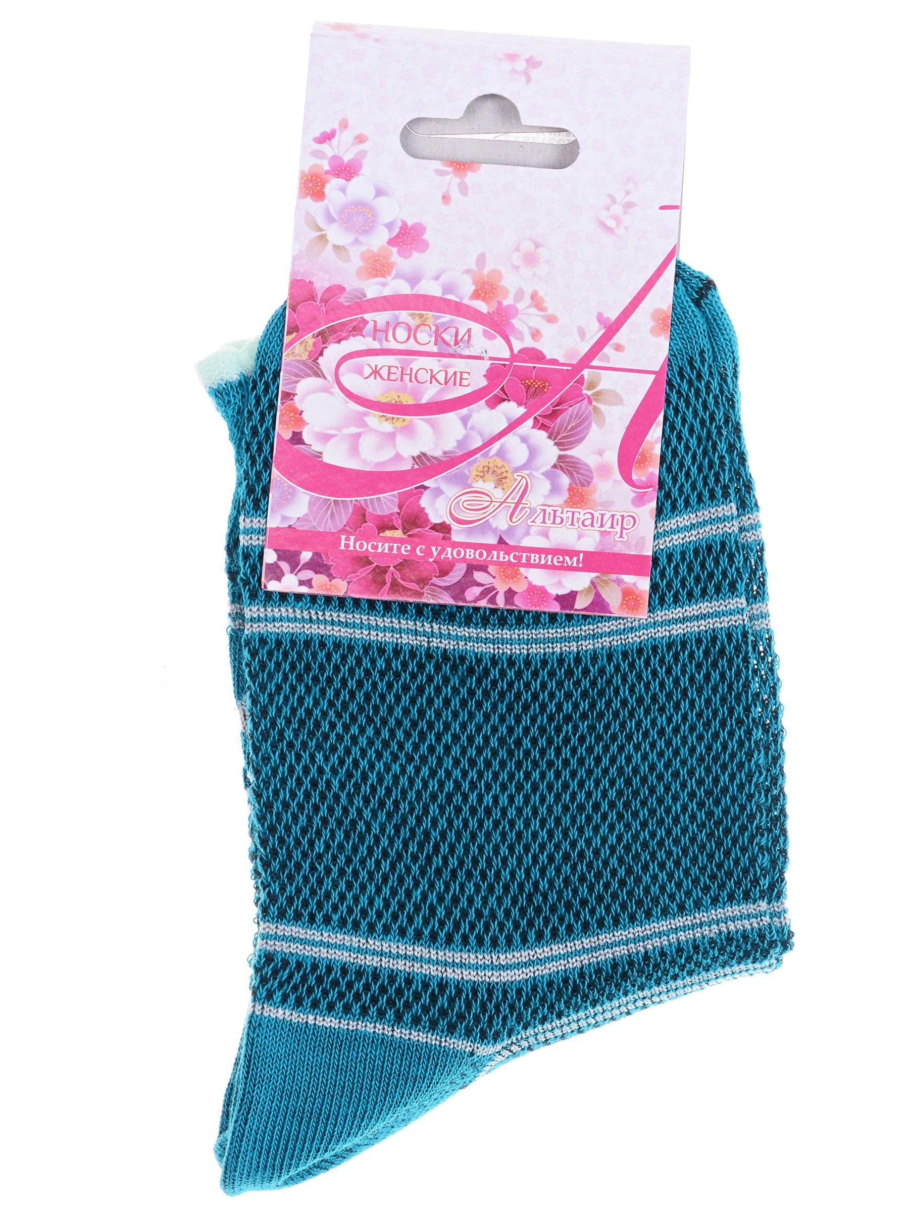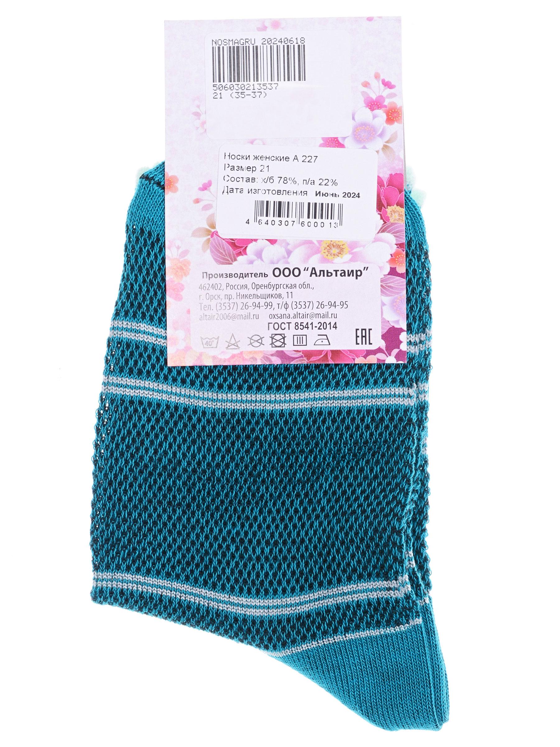 Летние укороченные женские носки, цвет бирюзовый, повседневные, в сеточку, ажурные, шов обычный (не бесшовные), принт (рисунок): овощи / фрукты / ягоды, с узором, состав: 78% хлопок, 22% полиамид, арт. А227. Производитель «ООО Альтаир, г. Орск, Оренбургская обл, Россия» под брендом «Альтаир».