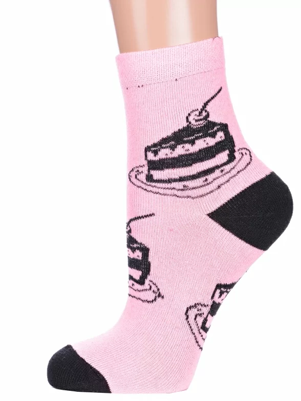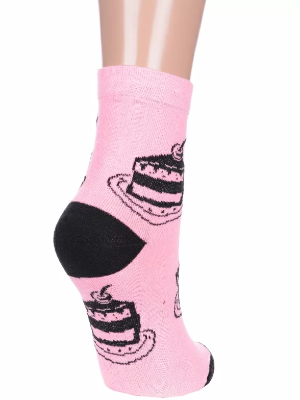 Круглогодичные укороченные женские носки, цвет розовый-черный, с принтом, состав: 78% хлопок, 20% полиамид, 2% эластан, арт. А215. Производитель «ООО Альтаир, г. Орск, Оренбургская обл, Россия» под брендом «Альтаир».