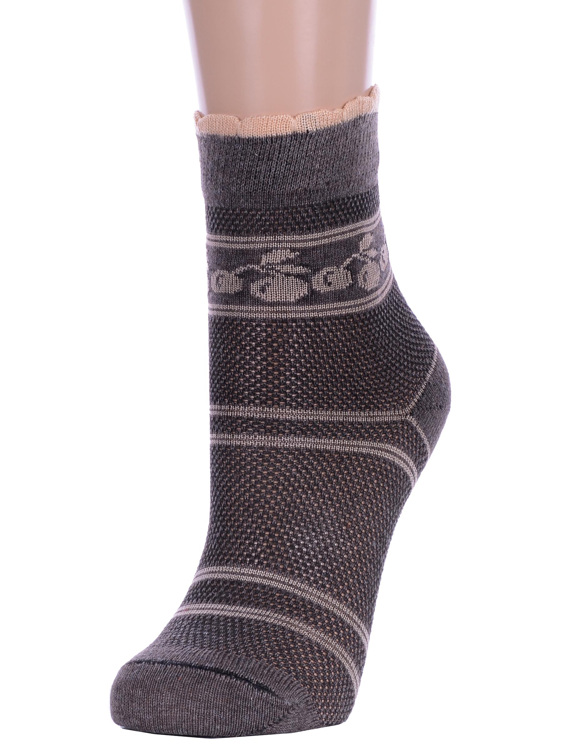 Летние укороченные женские носки, цвет коричневый, повседневные, в сеточку, ажурные, шов обычный (не бесшовные), принт (рисунок): овощи / фрукты / ягоды, с узором, состав: 78% хлопок, 22% полиамид, арт. А227. Производитель «ООО Альтаир, г. Орск, Оренбургская обл, Россия» под брендом «Альтаир».